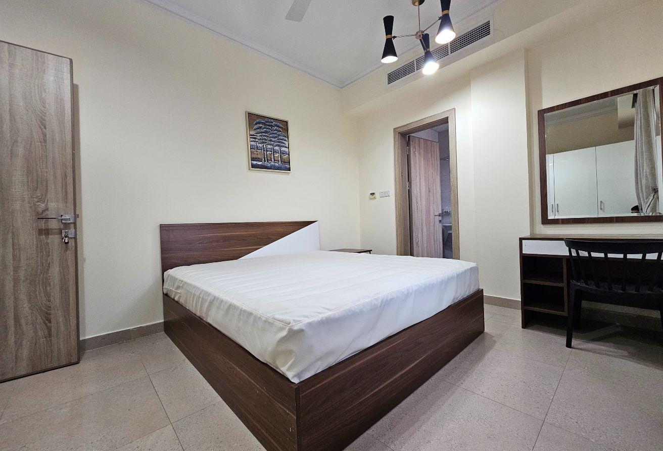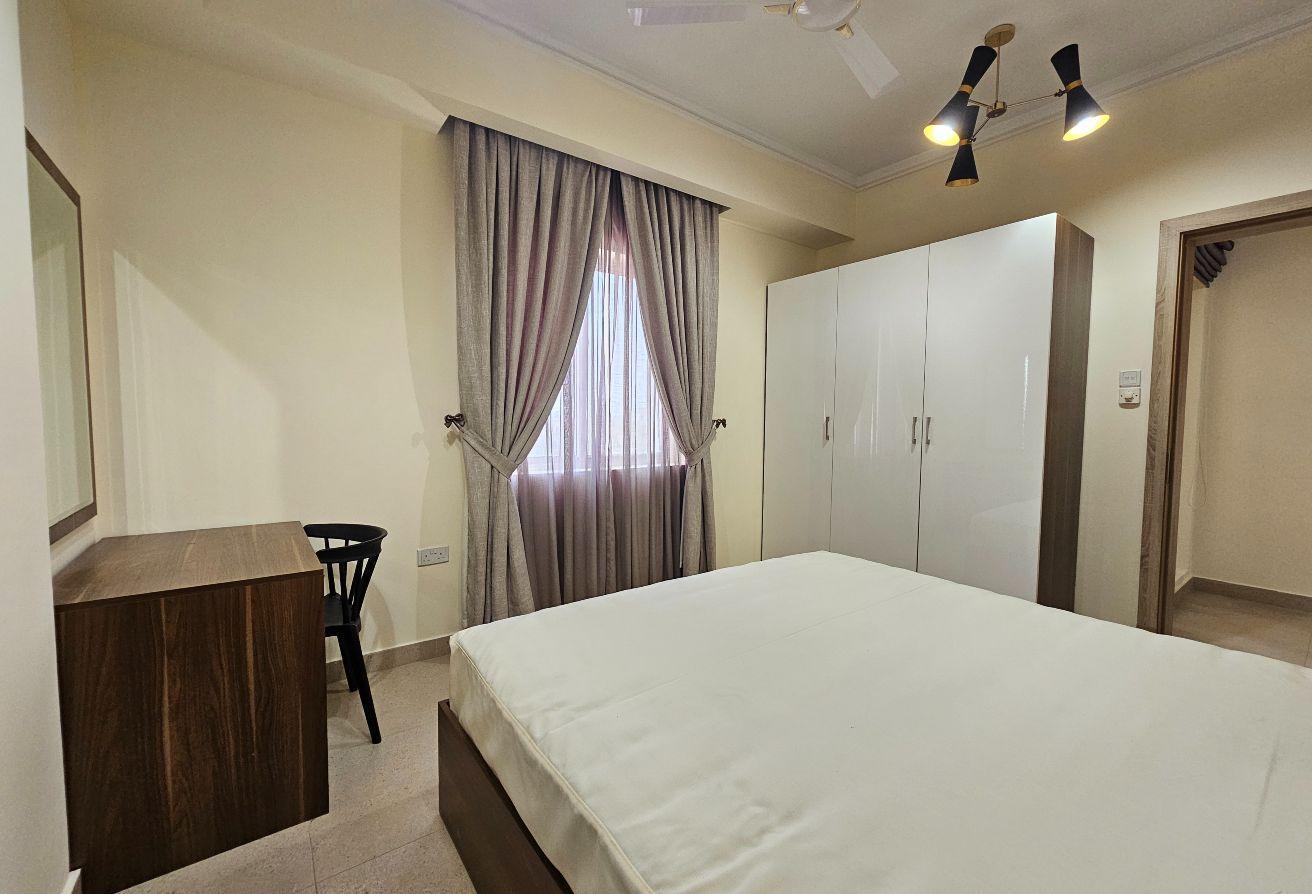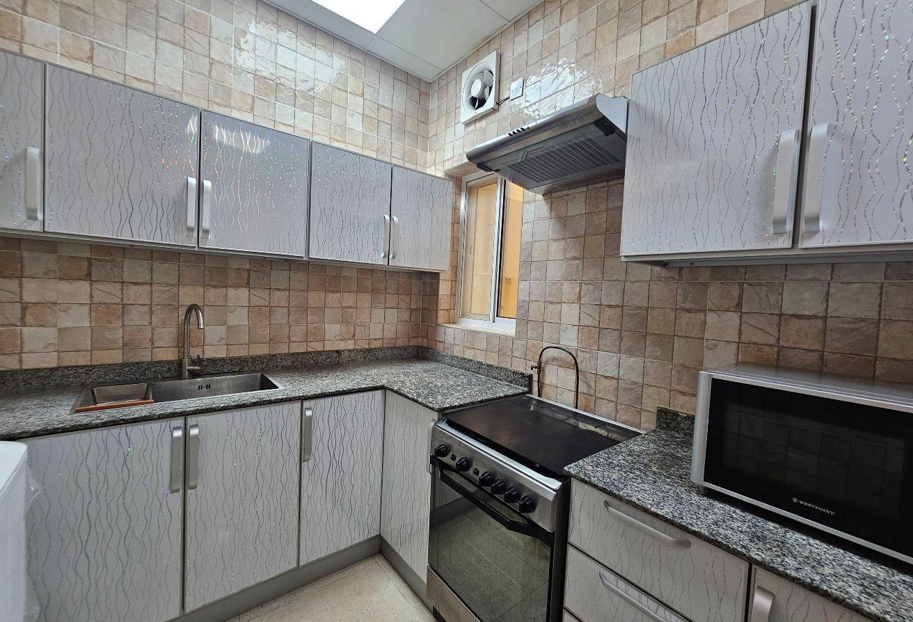 Seize this exceptional opportunity now! A newly renovated family-friendly apartment is available for rent in Um Al Hassam. It features spacious living and dining areas, 2 bedrooms, 2 bathrooms, a fully equipped kitchen, built-in wardrobes, and dedicated parking—everything included.