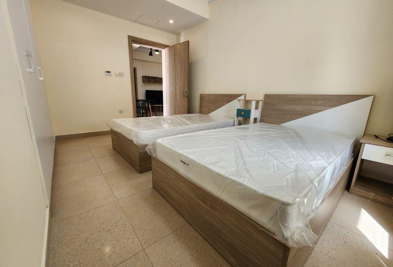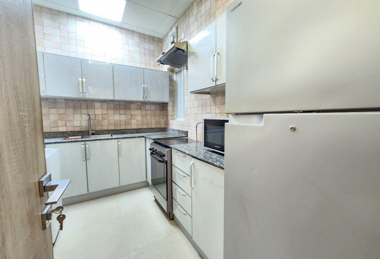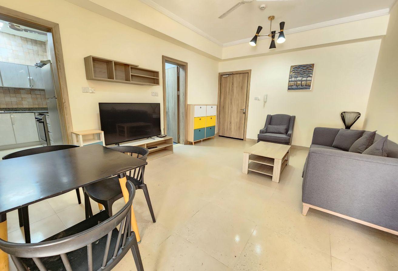 Seize this exceptional opportunity now! A newly renovated family-friendly apartment is available for rent in Um Al Hassam. It features spacious living and dining areas, 2 bedrooms, 2 bathrooms, a fully equipped kitchen, built-in wardrobes, and dedicated parking—everything included.