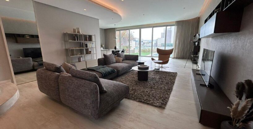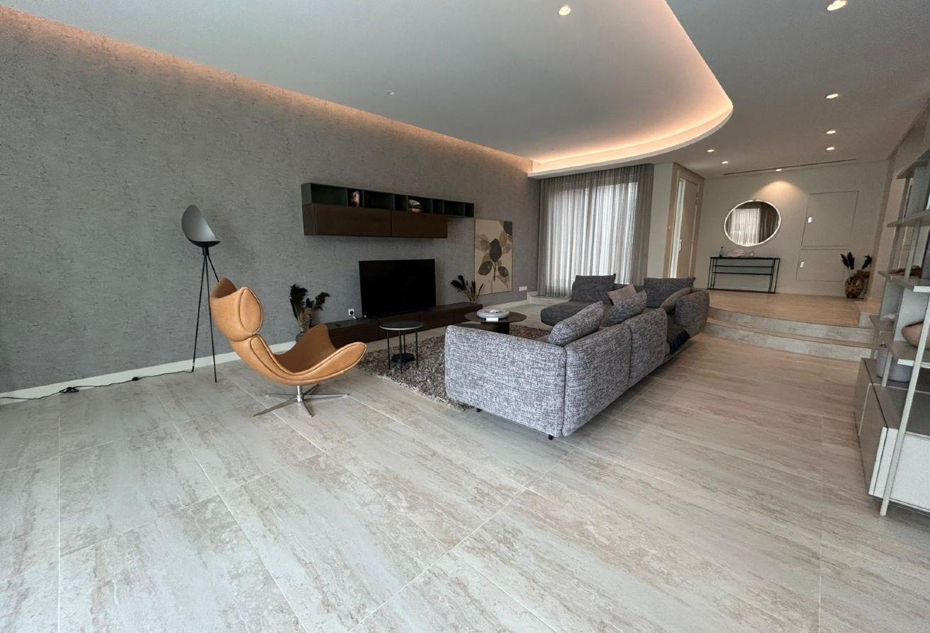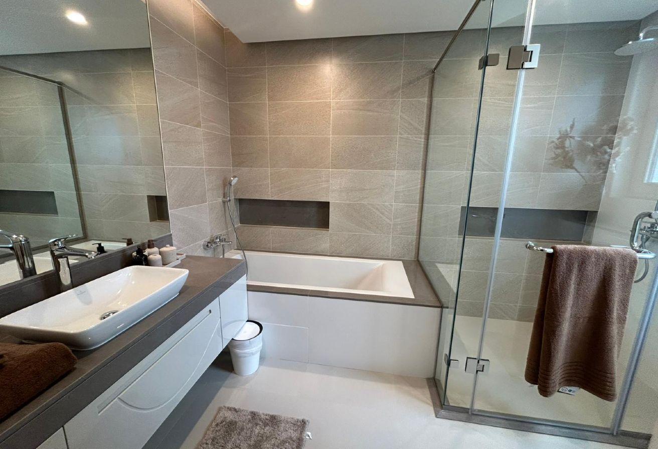 The villa features three well-proportioned bedrooms along with a separate office room, perfect for remote work or a private study. The living and dining areas are bright and spacious, creating a welcoming atmosphere enhanced by uninterrupted sea views. A modern, fully equipped kitchen and high-quality finishes throughout reflect the home’s attention to detail and refined standard.