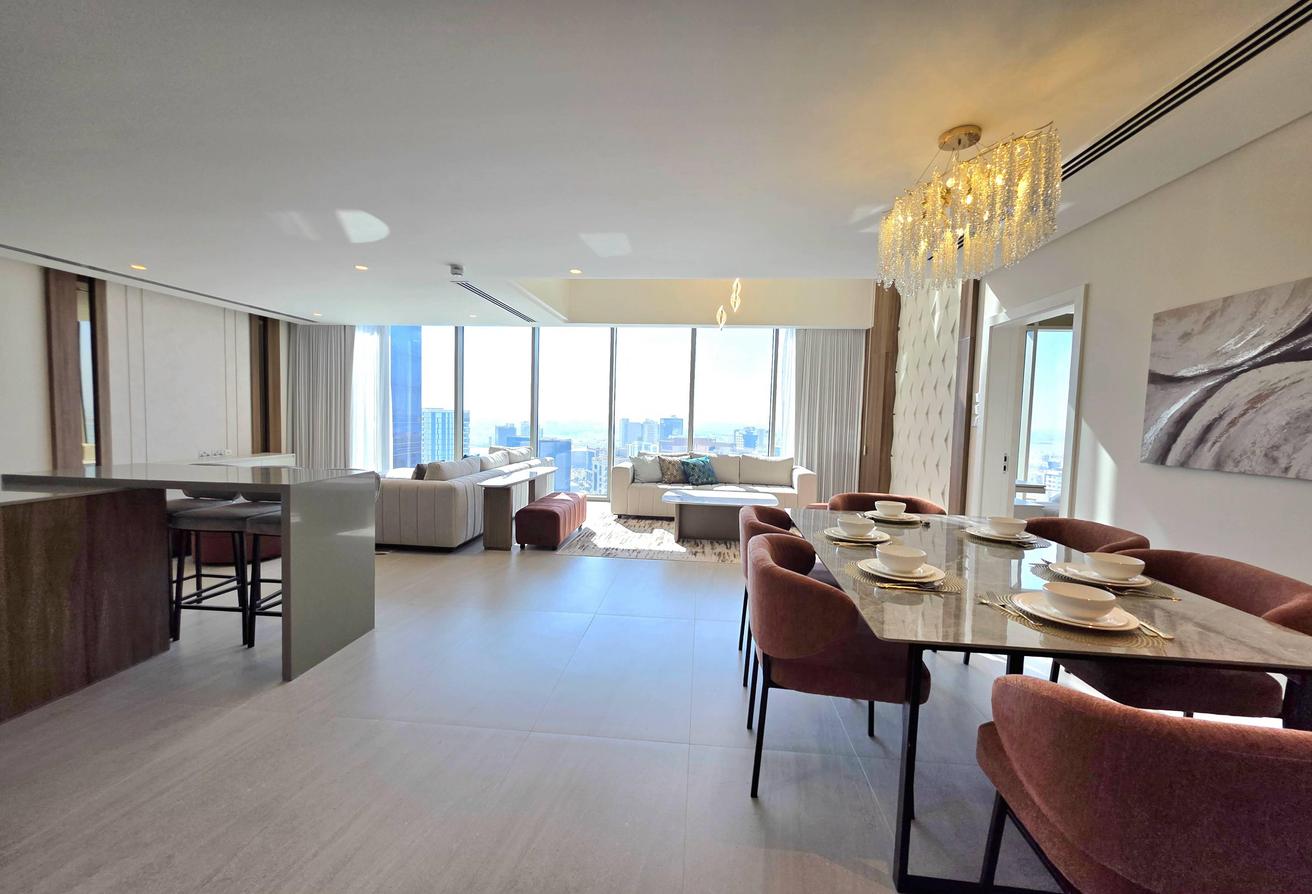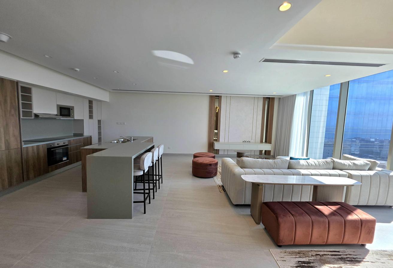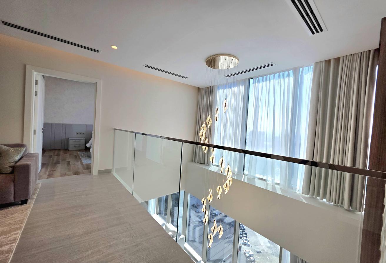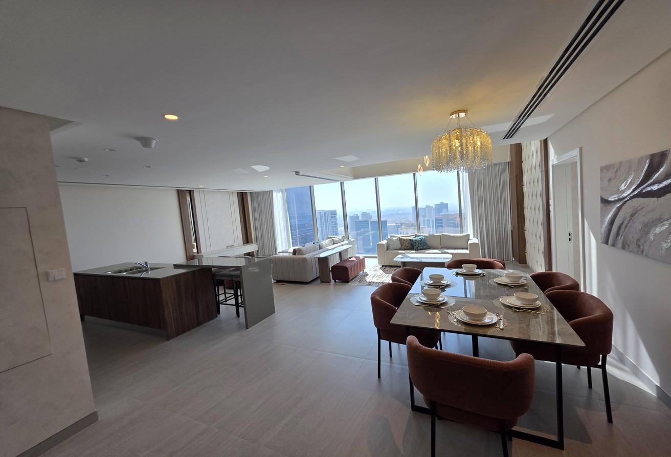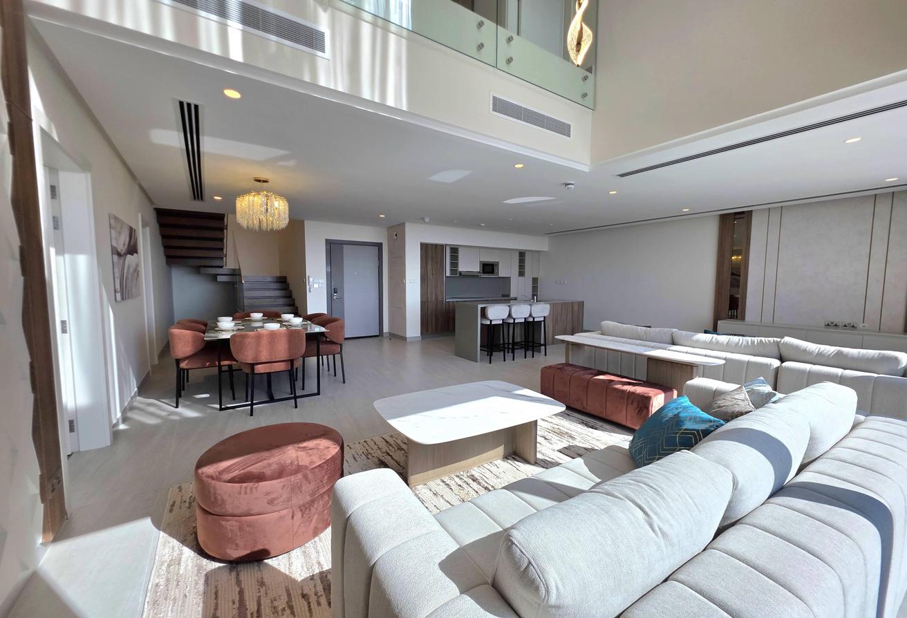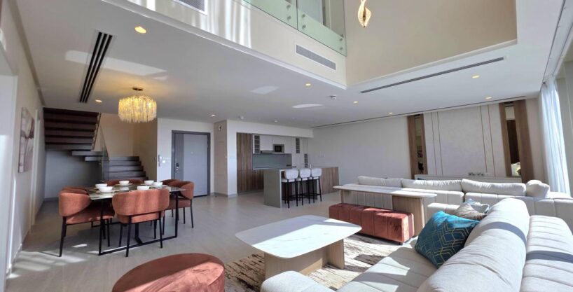 Enjoy elevated luxury living in this brand new, all-inclusive 3-bedroom duplex apartment located on a high floor in the prestigious Seef area, offering stunning panoramic sea views. The duplex features a spacious open-plan living and dining area, floor-to-ceiling windows, and a modern fully equipped kitchen, designed to provide both comfort and elegance.