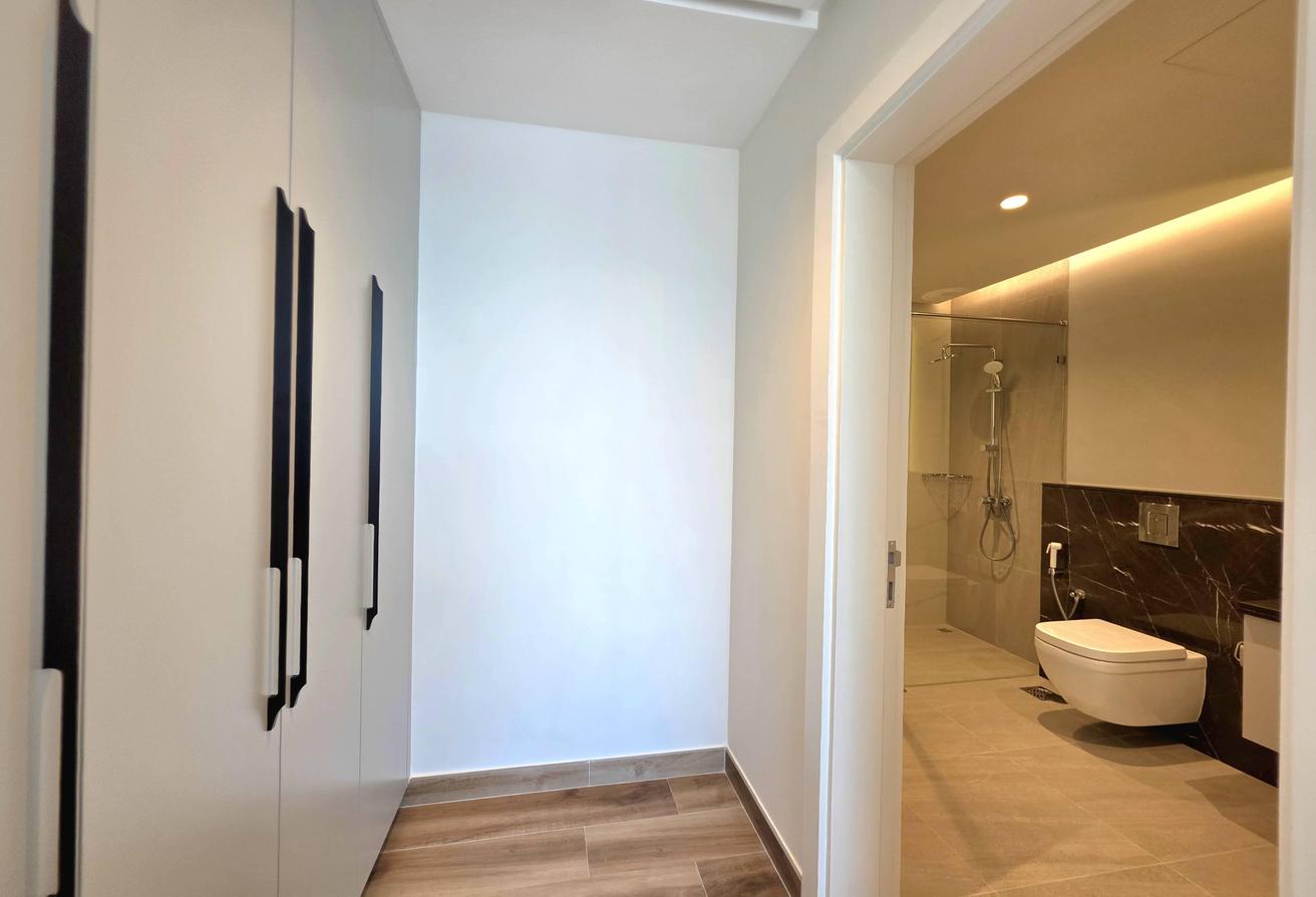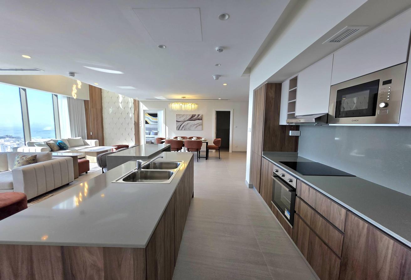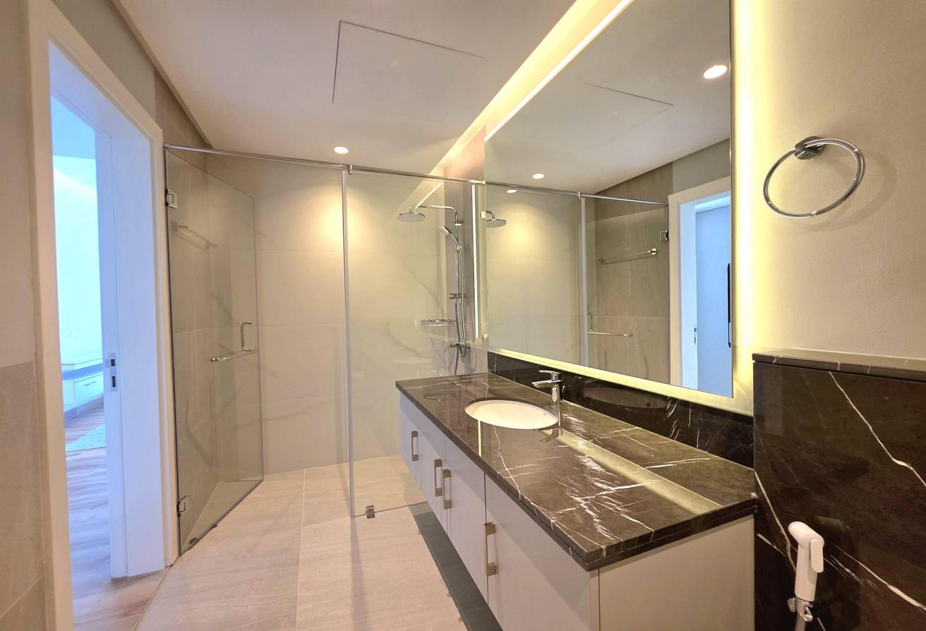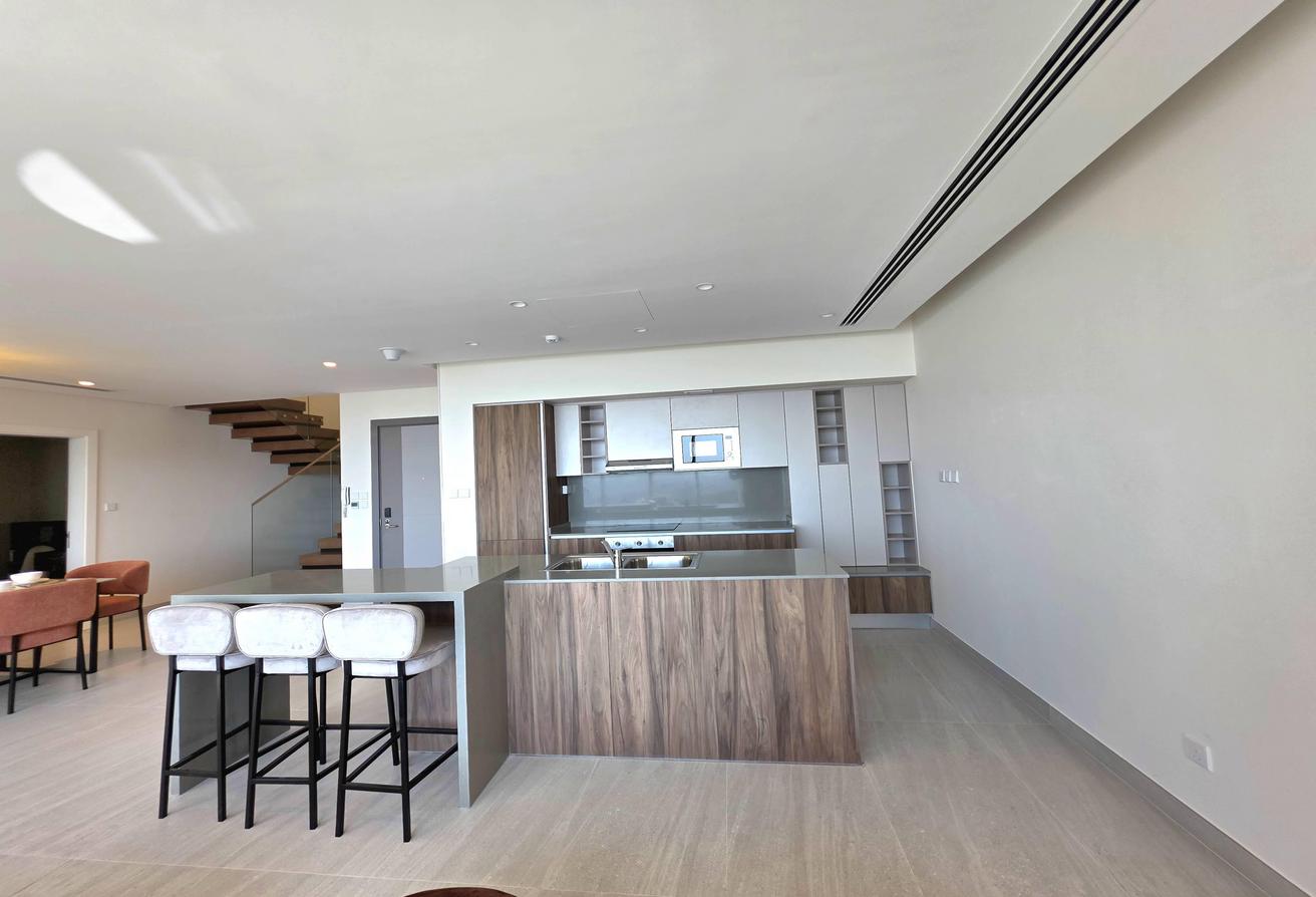 The layout offers excellent privacy with generously sized bedrooms, including a master bedroom with en-suite bathroom, premium finishes, and abundant natural light throughout. The high-floor position ensures a peaceful living environment with uninterrupted sea views.
