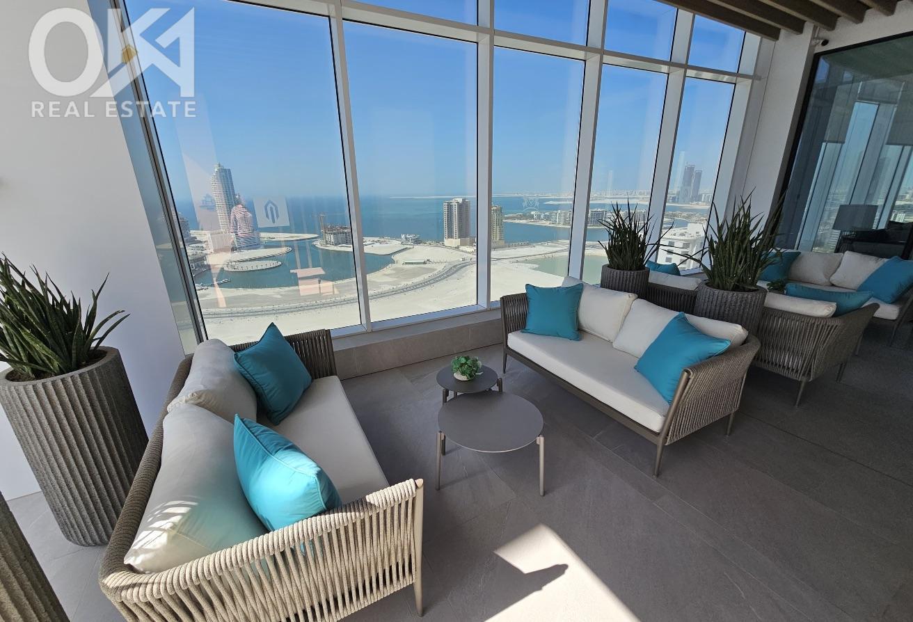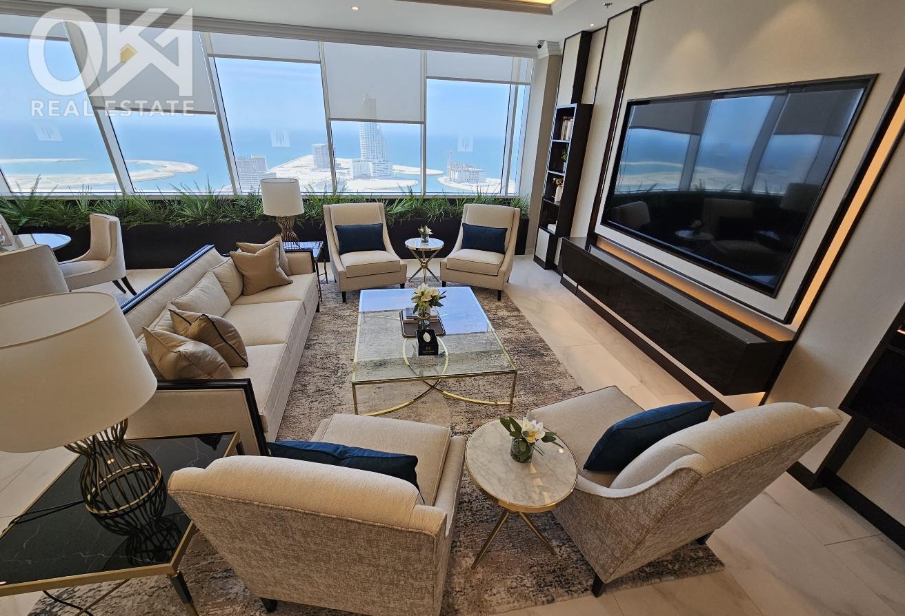 The apartment is thoughtfully designed and comes fully furnished with high-end finishes, open-plan living, and expansive windows that frame stunning sea and city skyline views.