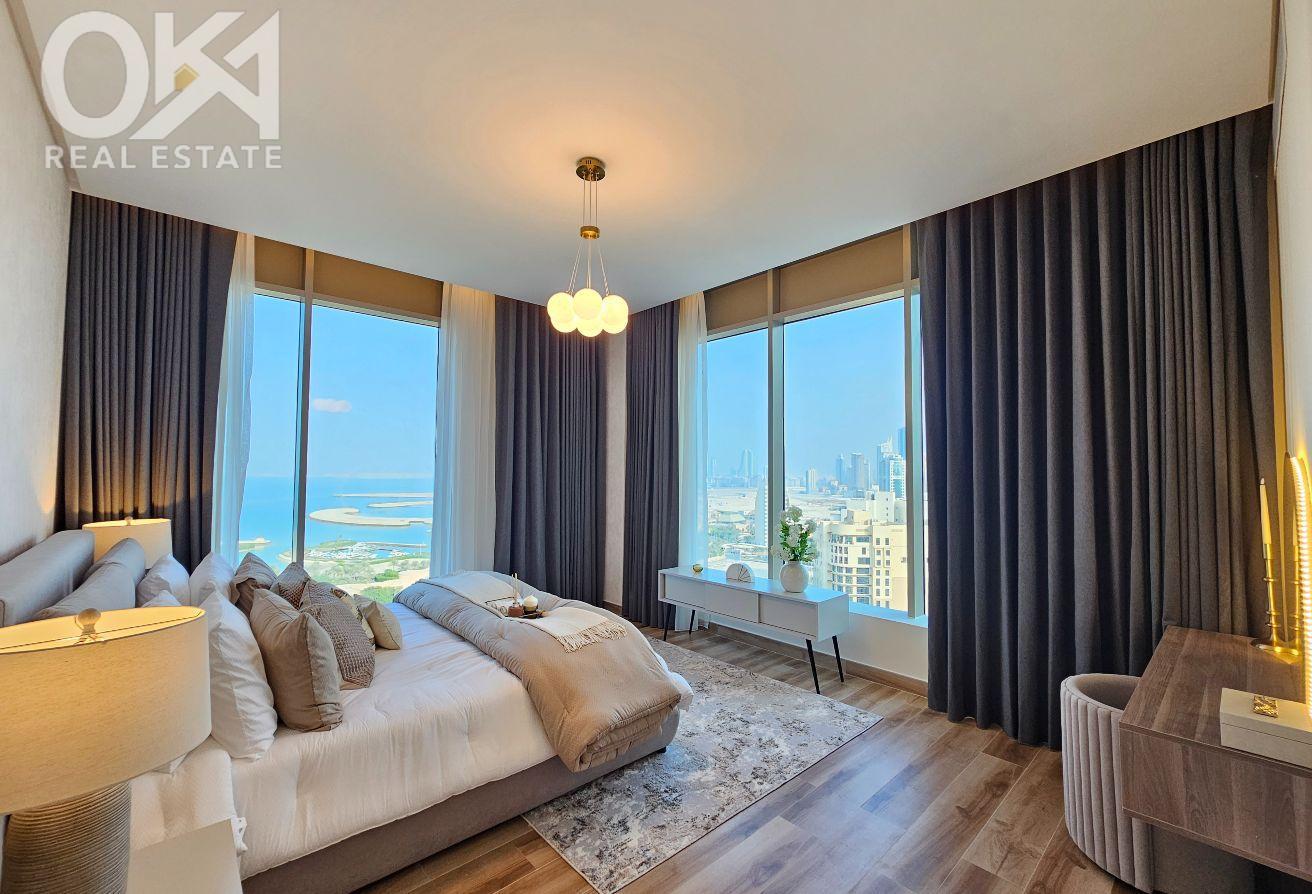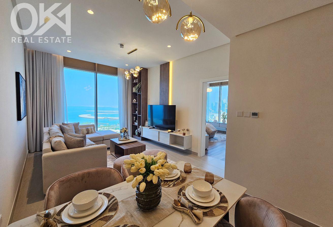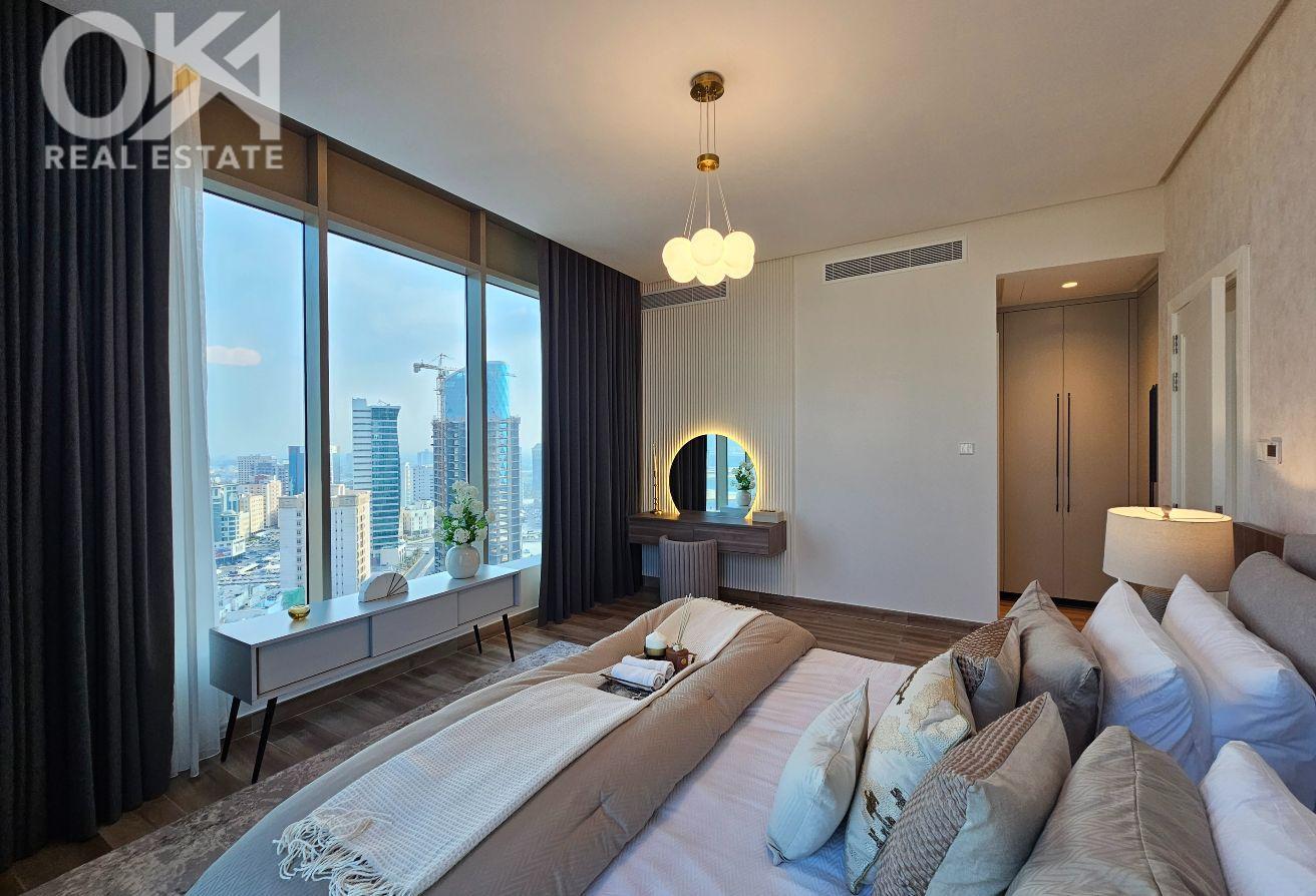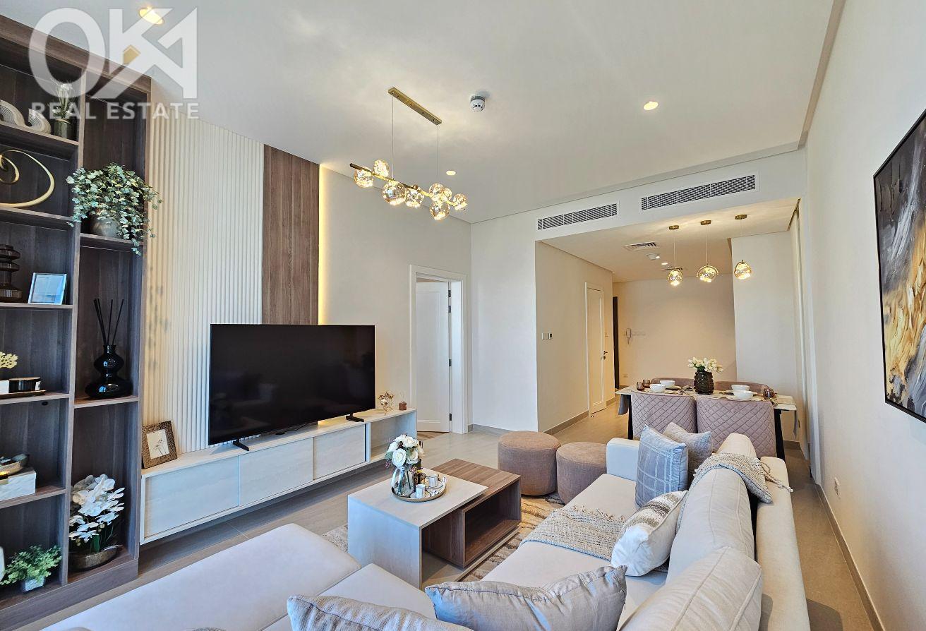 Experience refined urban living in this **brand-new, premium 1-bedroom apartment** located in the heart of Seef. Designed with elegance and comfort in mind, the apartment features a bright open layout, tasteful high-end furniture, and quality finishes that create a warm and inviting atmosphere. The modern open kitchen is fully equipped with high-end appliances, while the spacious bedroom offers ample wardrobe space and a calm retreat. A sleek contemporary bathroom completes this beautifully crafted home, with **sea views** adding an extra touch of luxury.
