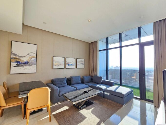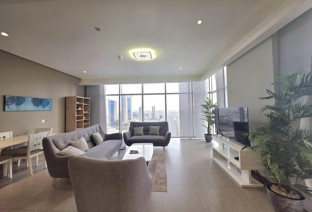 Enjoy refined urban living in this elegant two-bedroom apartment located in a prestigious residential tower in Seef. Designed with comfort and functionality in mind, the apartment features a modern layout with bright interiors and high-quality finishes, making it ideal for families or professionals seeking a premium lifestyle. The spacious living area is naturally well-lit and seamlessly connected to an open-plan kitchen that enhances everyday convenience. Both bedrooms offer comfort, privacy, and ample space, complemented by two well-finished bathrooms.