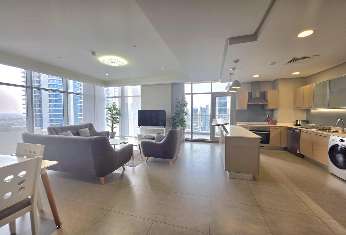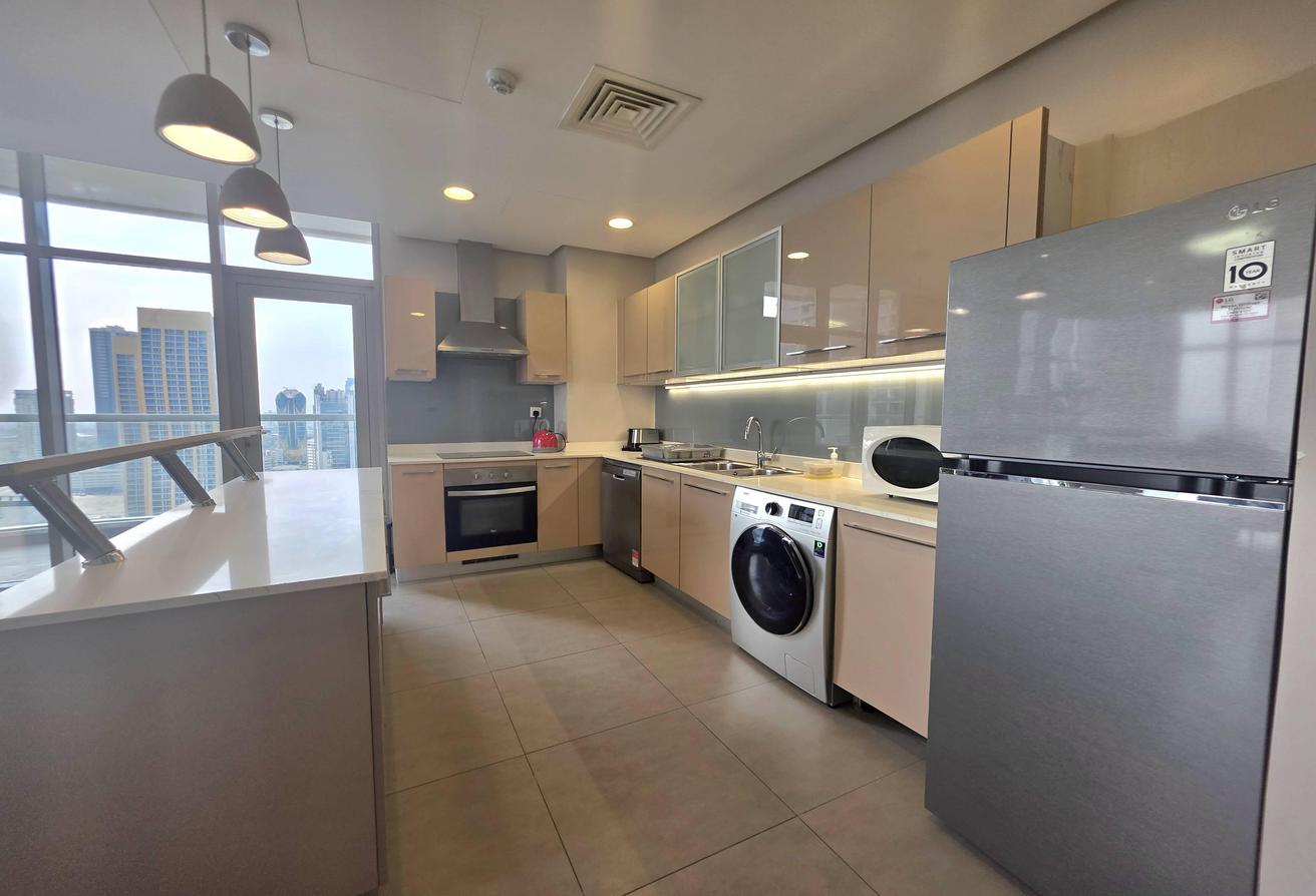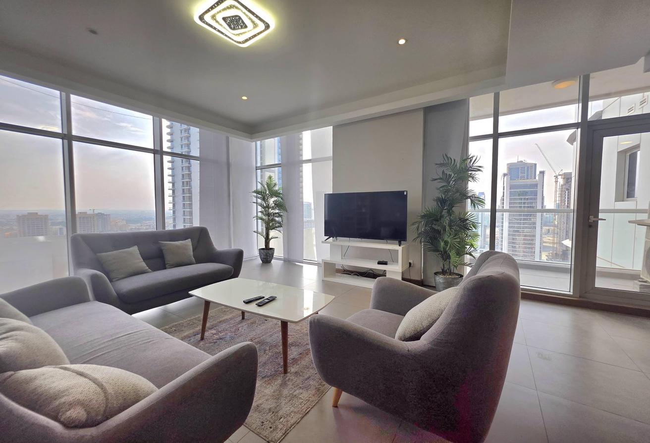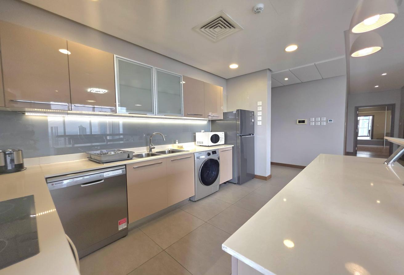 Enjoy refined urban living in this elegant two-bedroom apartment located in a prestigious residential tower in Seef. Designed with comfort and functionality in mind, the apartment features a modern layout with bright interiors and high-quality finishes, making it ideal for families or professionals seeking a premium lifestyle. The spacious living area is naturally well-lit and seamlessly connected to an open-plan kitchen that enhances everyday convenience. Both bedrooms offer comfort, privacy, and ample space, complemented by two well-finished bathrooms.
