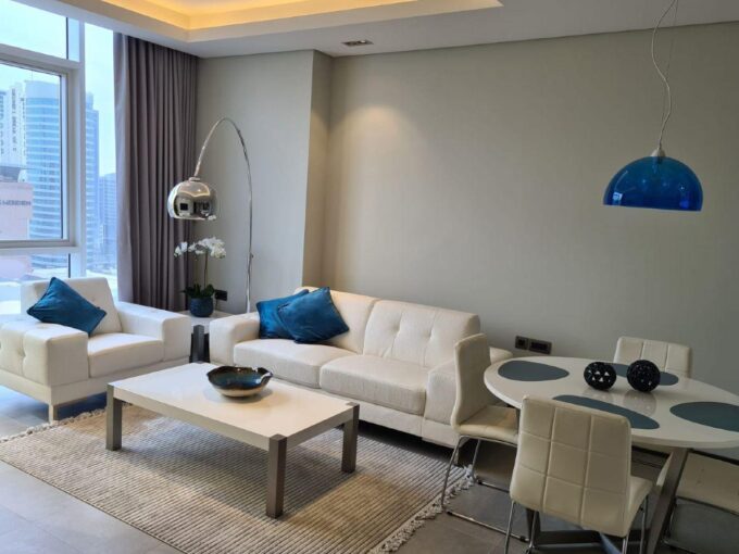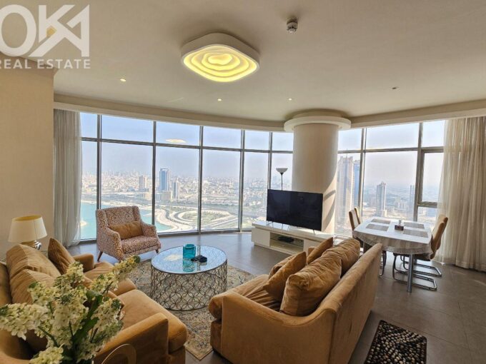 Enjoy refined urban living in this elegant one-bedroom apartment located in a prestigious residential tower in Seef. Designed with comfort and functionality in mind, the apartment features a modern layout with bright interiors and high-quality finishes, making it ideal for professionals or couples seeking a premium lifestyle. The living area is spacious and naturally well-lit, seamlessly connected to an open-plan kitchen that enhances everyday convenience. The bedroom offers comfort, privacy, and a relaxing atmosphere, complemented by a well-finished bathroom.