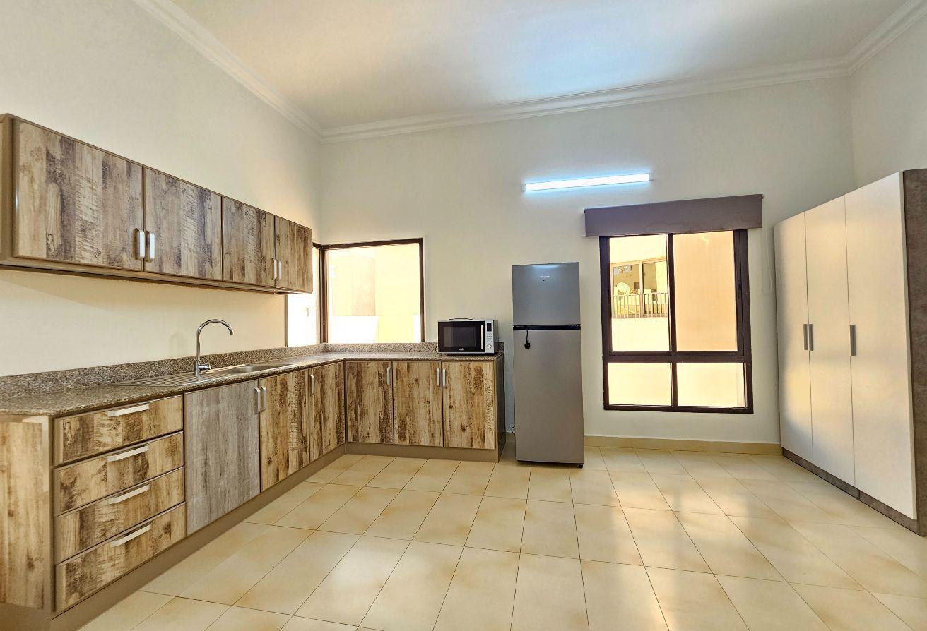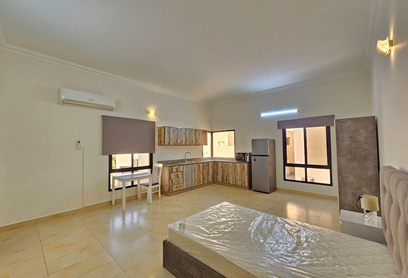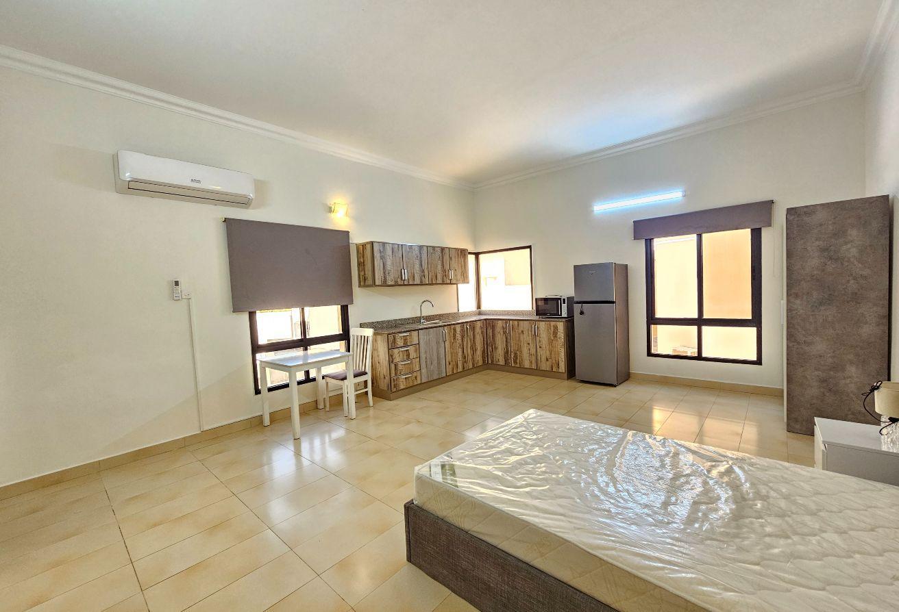This apartment features a fully furnished studio with unlimited electricity and water allowance (EWA), as well as an open-plan kitchen and toilet. It is situated in a peaceful residential area of Janabiya, within a family-oriented building near Al Mercado Mall. The apartment is suitable for a couple or a family.