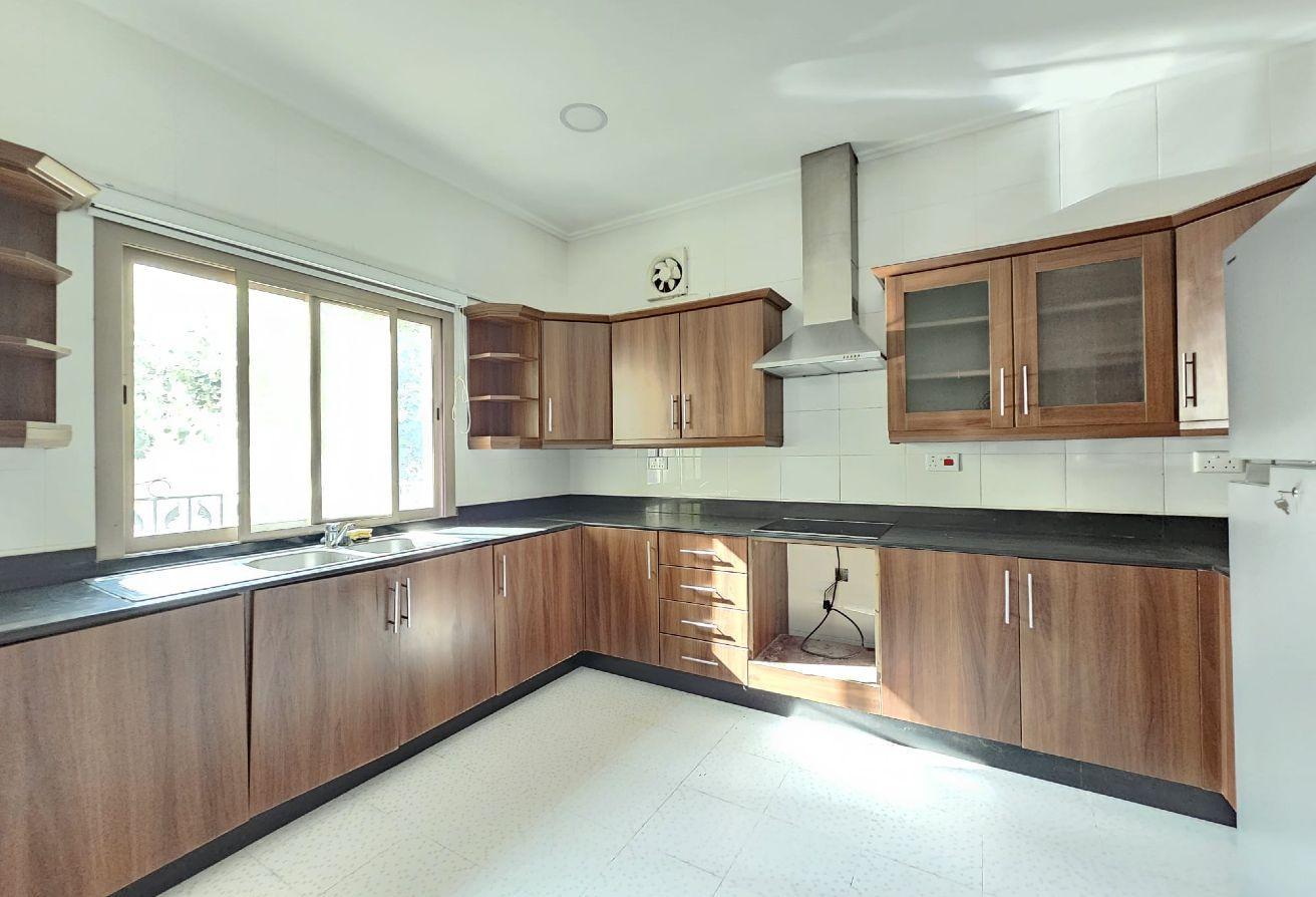 The villa features **4 spacious bedrooms, 5 modern bathrooms, a maid’s room, and two fully equipped kitchens**. The elegant **living and dining areas** provide the perfect space for family gatherings and entertaining guests.
