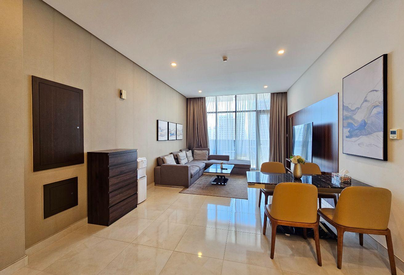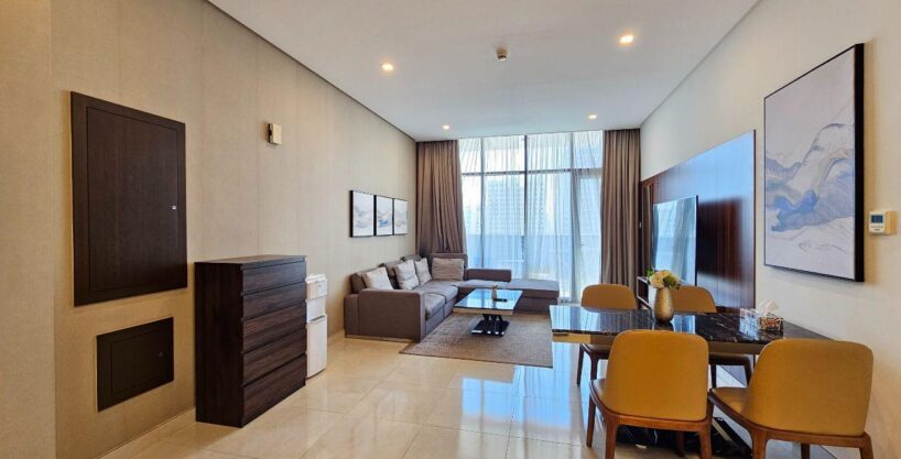This exceptional apartment offers luxurious 5-star facilities and modern conveniences. It features two stylish bedrooms and two bathrooms, along with a spacious living room, a dining area, a state-of-the-art kitchen, and a charming balcony with a city view