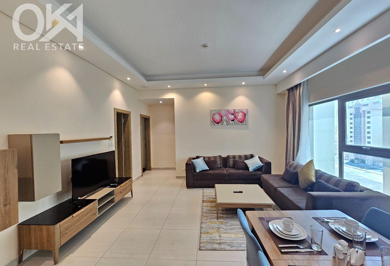 Discover modern luxury in this furnished apartment in a prestigious Juffair tower. Featuring 2 bedrooms and 3 bathrooms, it offers a special rent reduction effective July 2025.