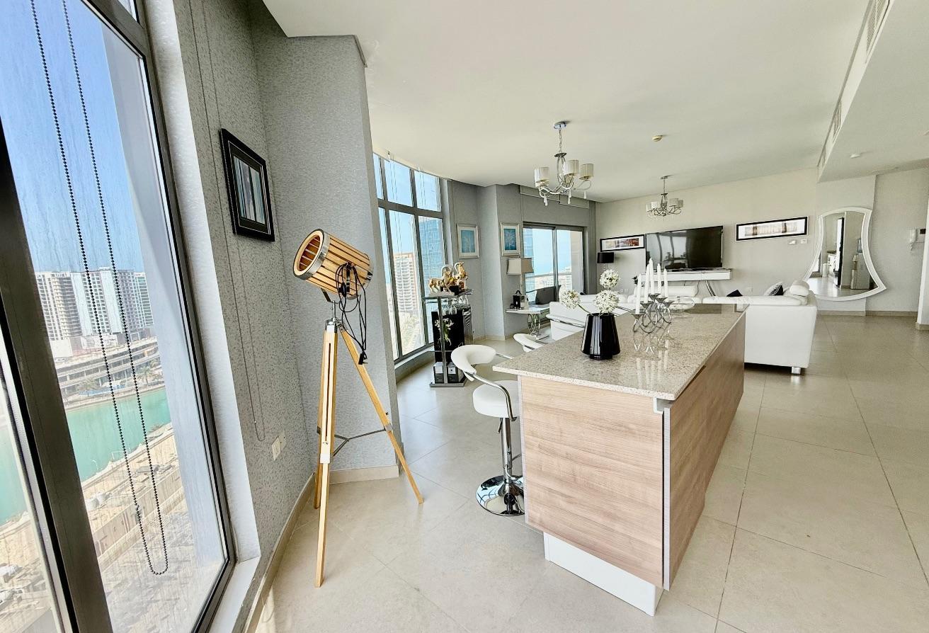 This lovely 1-bedroom apartment in Amwaj offers beautiful sea views and a peaceful atmosphere. The apartment is bright and filled with natural light, with large windows that let you enjoy the view every day. It has modern finishes and stylish furniture throughout, making it both comfortable and inviting. The apartment is situated in a prime location in Amwaj, walking distance to supermarkets like Mega Mart and Alosra, hospitals (American Mission Hospital) and different coffee shops.