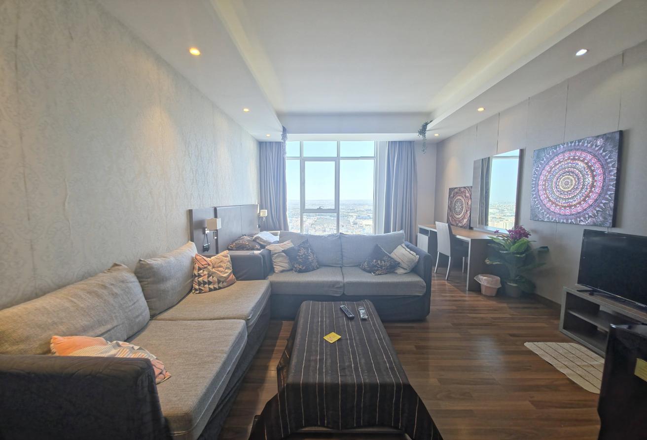 High Floor Spacious Fully-Furnished Studio apartment in a Residential Family Building with all Facilities. The apartment is ready for rent in one of the neat n Clean and Famous buildings of the sanabis Area. The building has all facilities. And situated near all big landmarks.