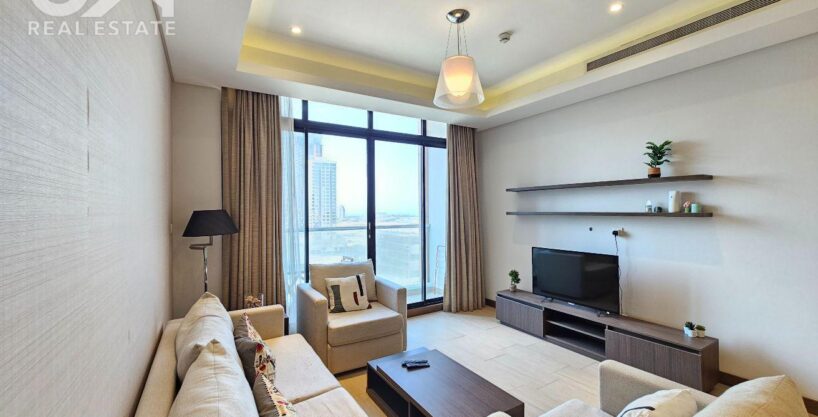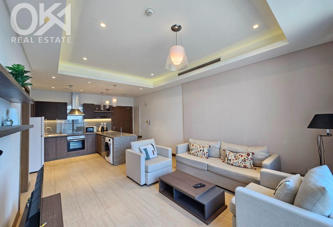 Experience spacious luxury living in this stunning 1-bedroom, 2-bathroom apartment with panoramic views, located in the heart of Seef, just across from City Centre. This newly furnished residence features two spacious balconies with beautiful sea views and is situated in a prestigious tower. This is the best deal you can find!