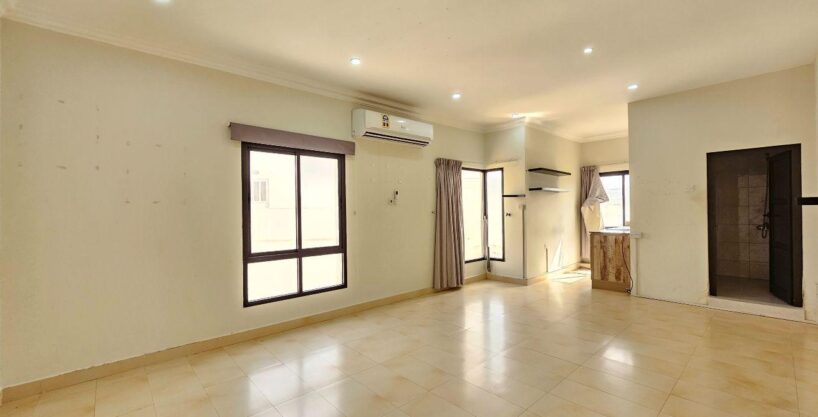 This apartment offers a semi-furnished studio with unlimited electricity and water allowances (EWA), along with an open-plan kitchen and restroom. It is situated in a tranquil residential area of Janabiya, within a family-oriented building near Al Mercado Mall. The apartment is appropriate for a couple or a family.