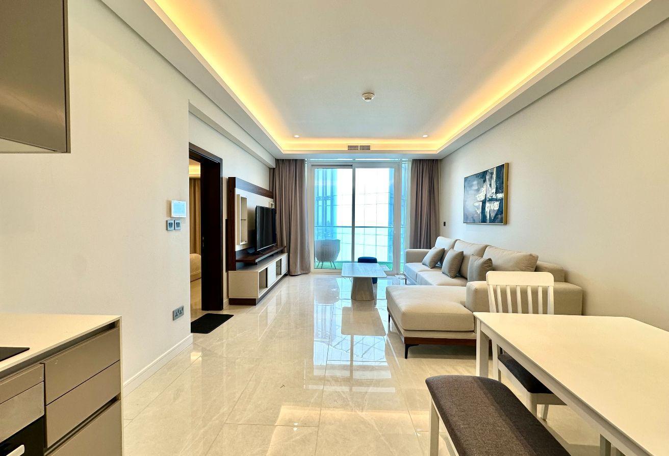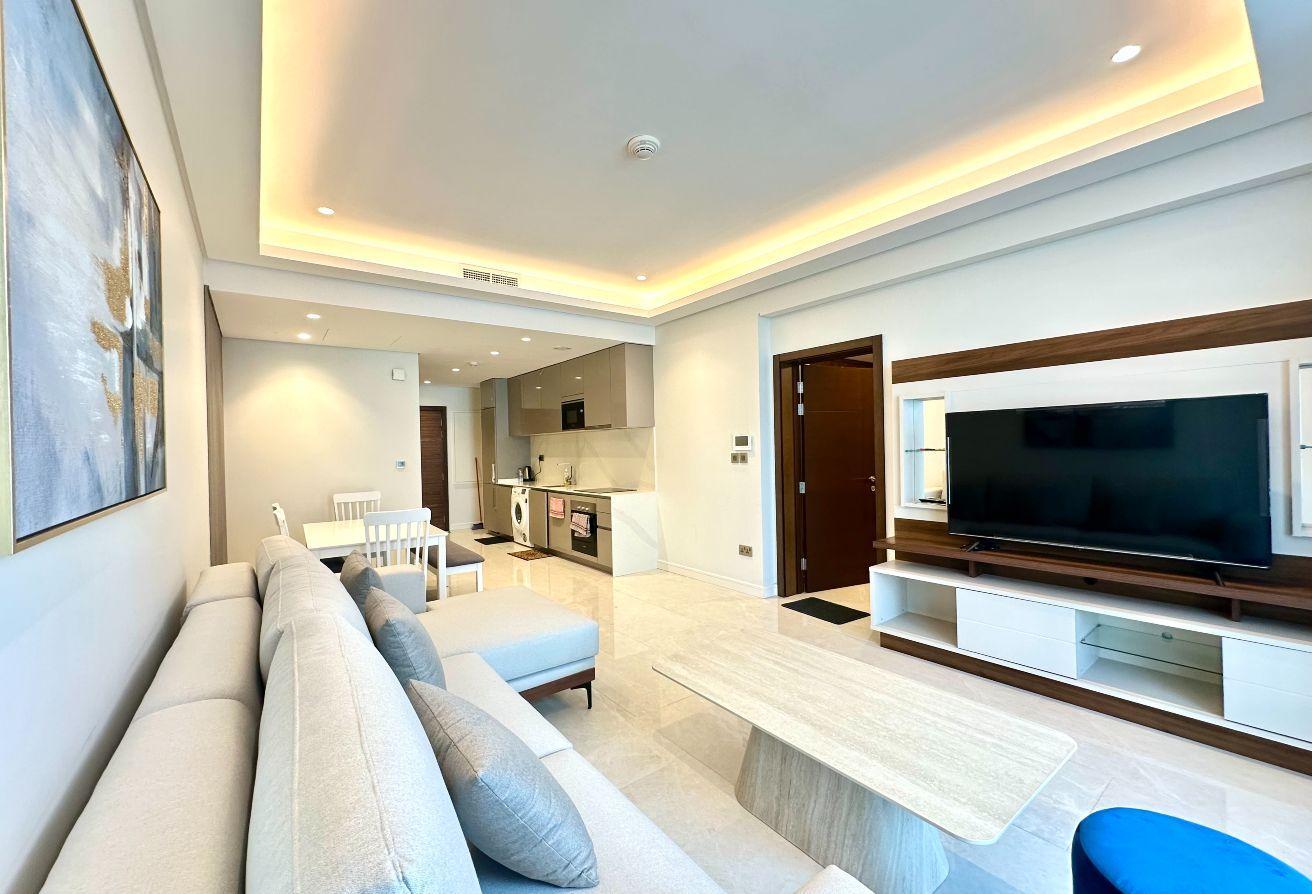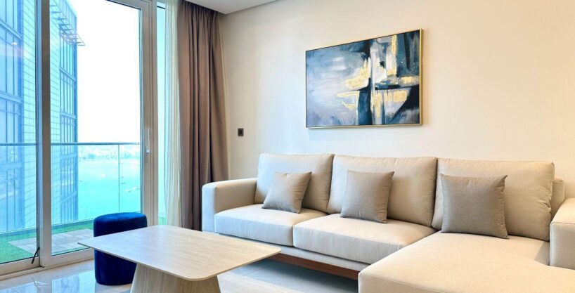 This elegant fully furnished one-bedroom apartment offers a perfect blend of comfort, space, and lifestyle, overlooking a stunning swimming pool and serene canal views. Designed for relaxed modern living, the apartment features a spacious living room with large windows that fill the space with natural light, ideal for both everyday comfort and entertaining