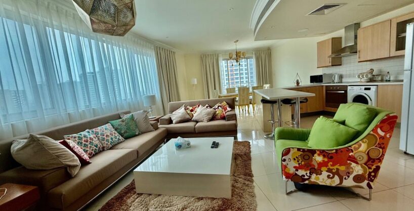 Discover this clean and spacious one-bedroom apartment in Amwaj Islands, perfectly suited for comfortable and modern living. The apartment features a bright open kitchen that flows seamlessly into the living area, creating a welcoming and airy space.