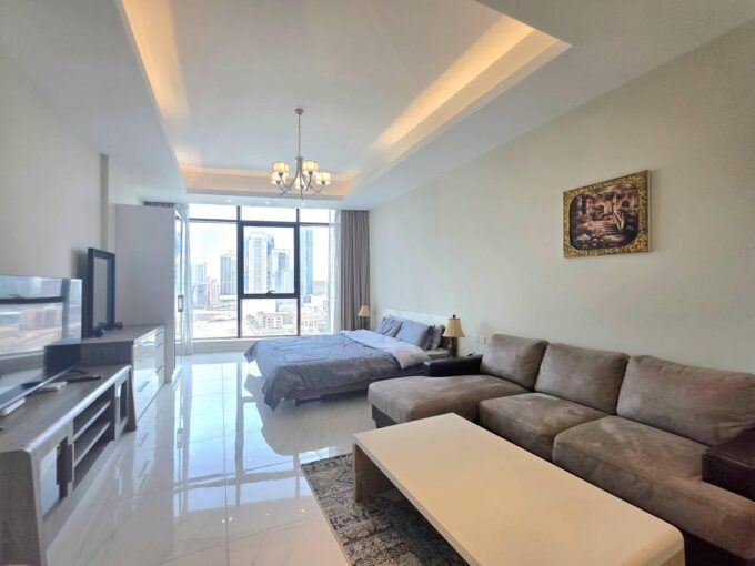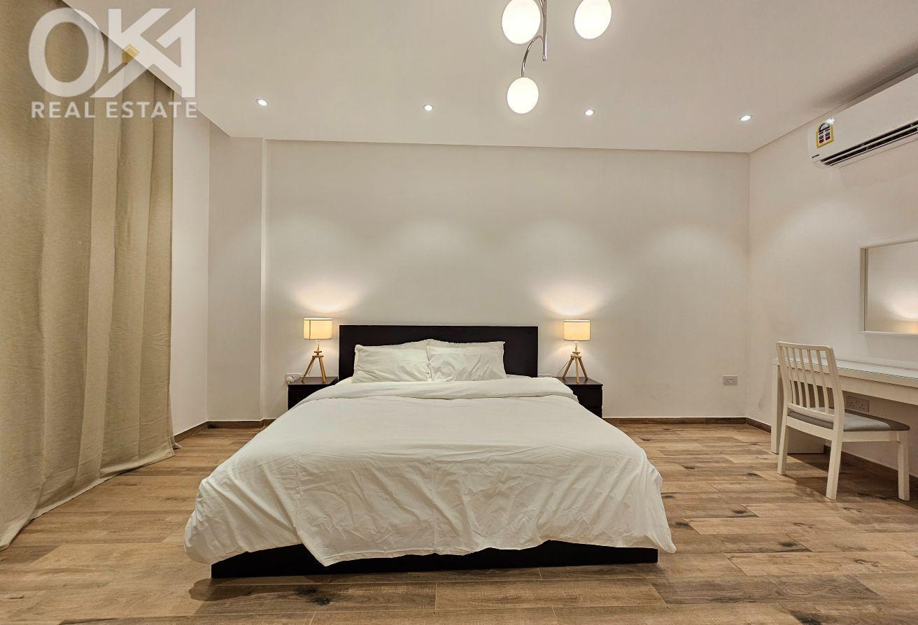 Don’t miss this stunning, fully furnished luxury apartment! It features a spacious bedroom, two modern bathrooms, a bright living area, and a contemporary open kitchen with premium appliances. Enjoy plenty of natural light from large windows and the convenience of a dry cleaning area in a quiet neighborhood near King Fahad Causeway. Ideal for families, the building offers a cozy and inviting environment. The apartment is very spacious.