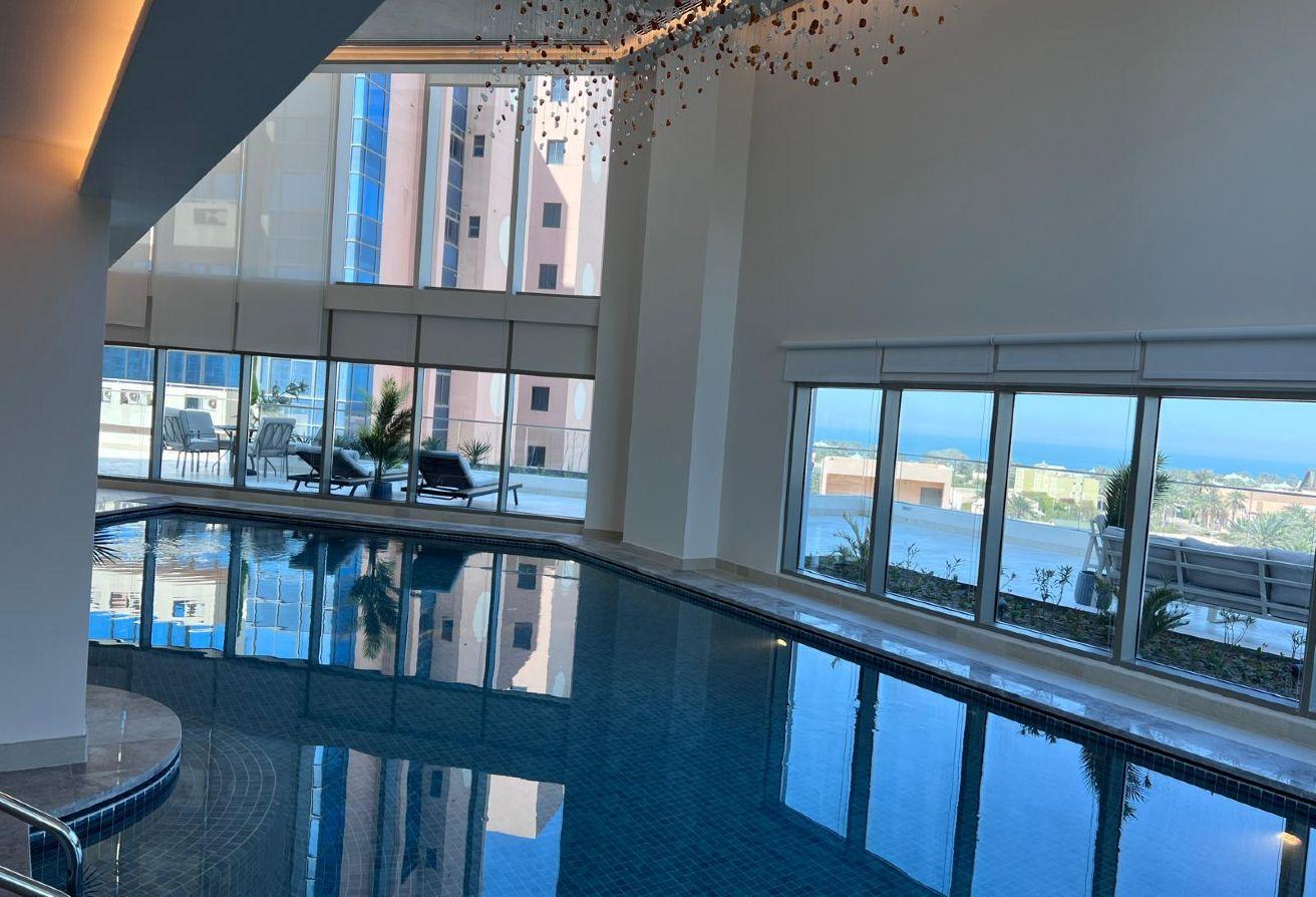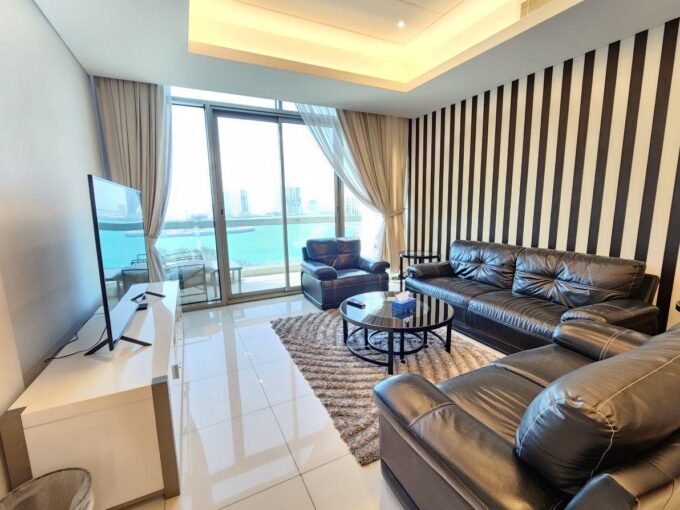 This luxurious one-bedroom, two-bathroom apartment is located in a prestigious residential tower in Seef District, conveniently located near Manama’s shopping malls, hypermarkets and several restaurants.