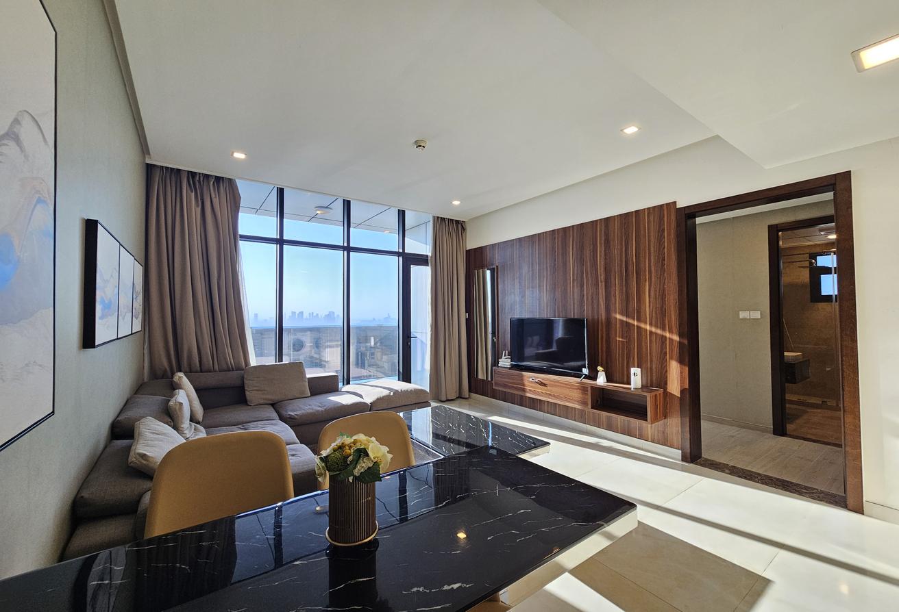 This exceptional apartment offers luxury living with 5-star hotel facilities. It features stylish bedrooms with en-suite bathrooms, a spacious living room, a modern kitchen, and large windows that provide plenty of natural light, plus a charming balcony.