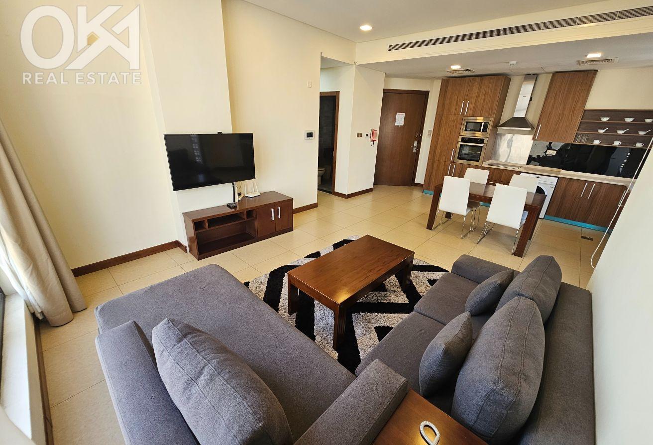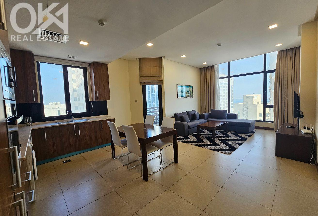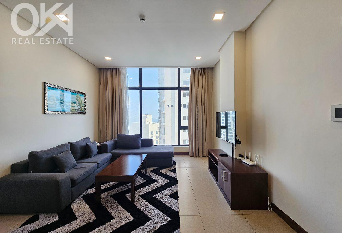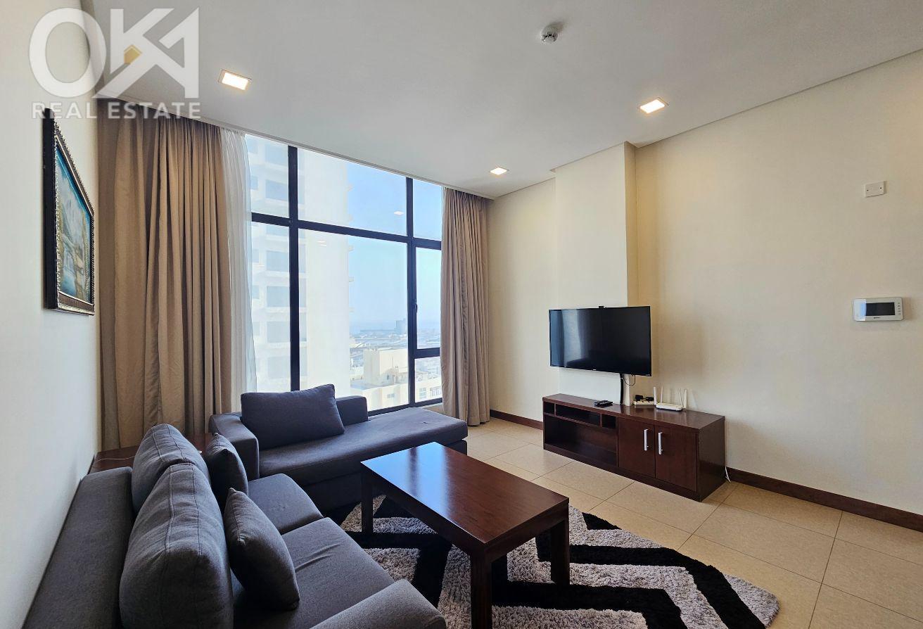 Experience luxury living in this fully furnished 1-bedroom apartment located in a prestigious tower in Juffair. Enjoy modern amenities, including an open kitchen, a balcony with a sea view, and weekly housekeeping services designed for your comfort.