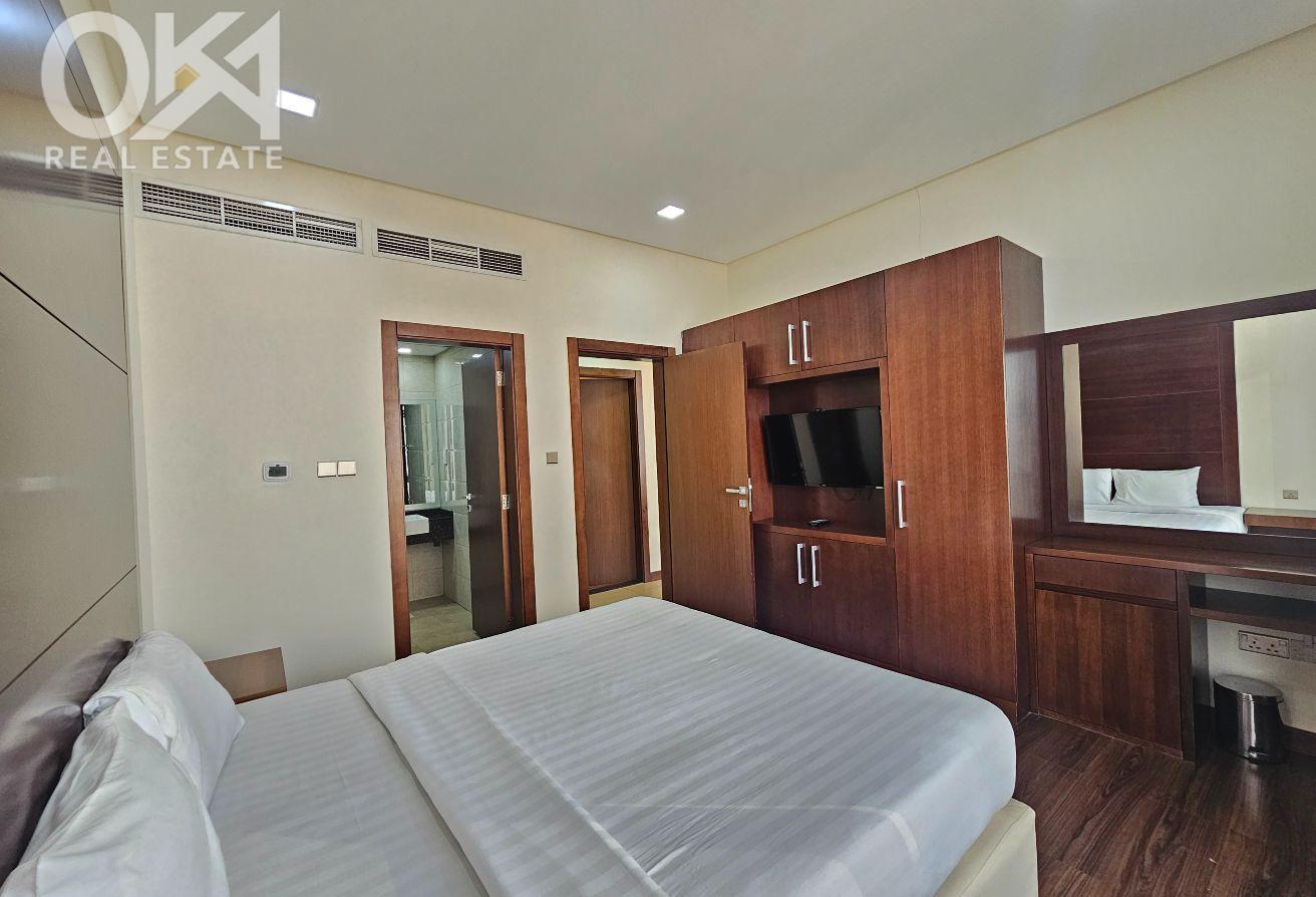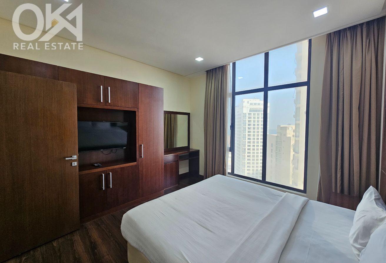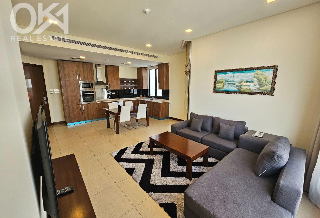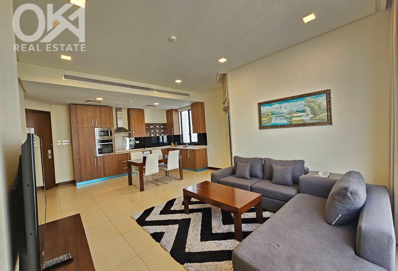 Experience luxury living in this fully furnished 1-bedroom apartment located in a prestigious tower in Juffair. Enjoy modern amenities, including an open kitchen, a balcony with a sea view, and weekly housekeeping services designed for your comfort.