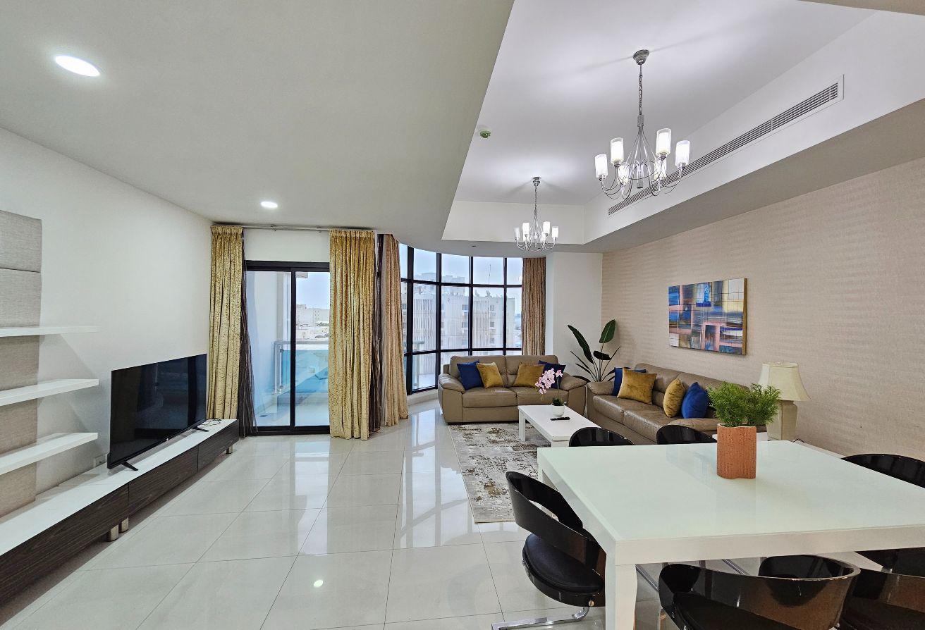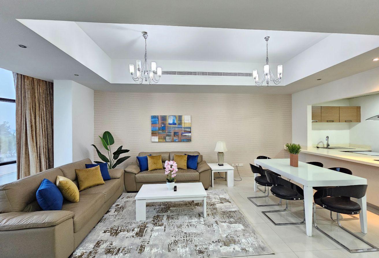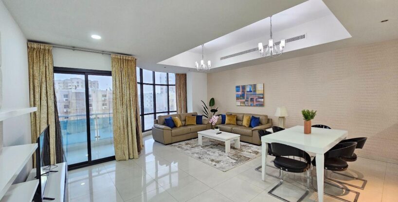 Experience luxury in this newly renovated, fully furnished 3-bedroom apartment in the prestigious Mahoos area, just minutes from Galleria Mall. Enjoy weekly housekeeping, an open kitchen, and a balcony with stunning sea views.