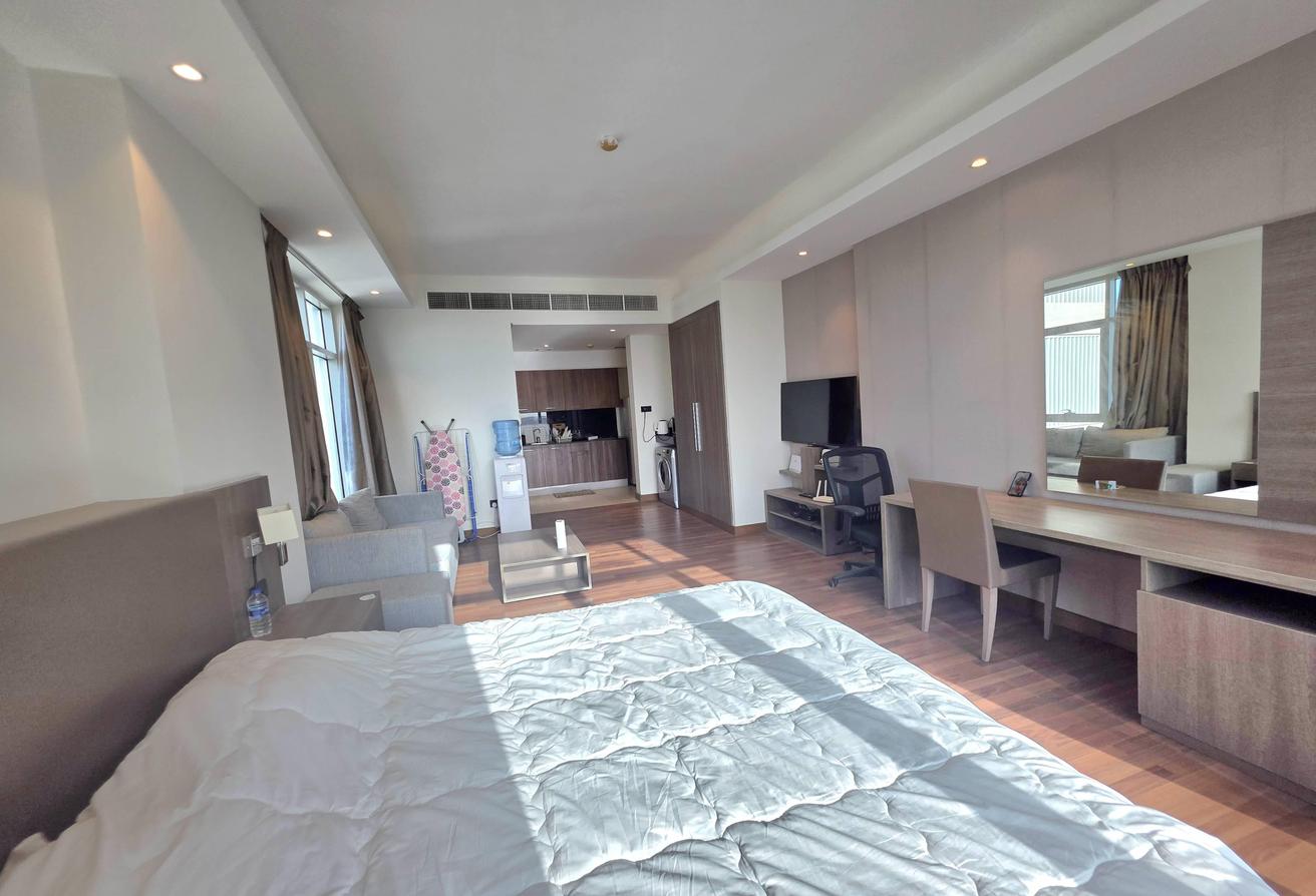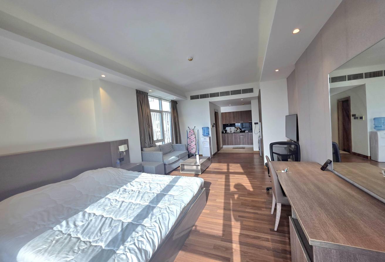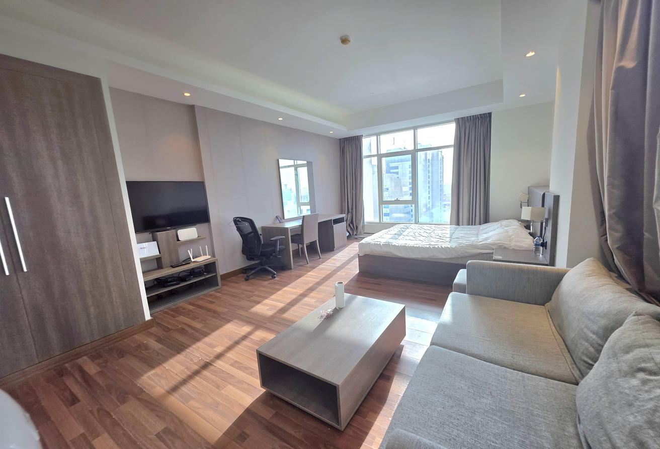 High Floor Spacious Fully-Furnished Studio apartment in a Residential Family Building with all Facilities. The apartment is ready for rent in one of the neat n Clean and Famous buildings of the sanabis Area. The building has all facilities. And situated near all big landmarks.