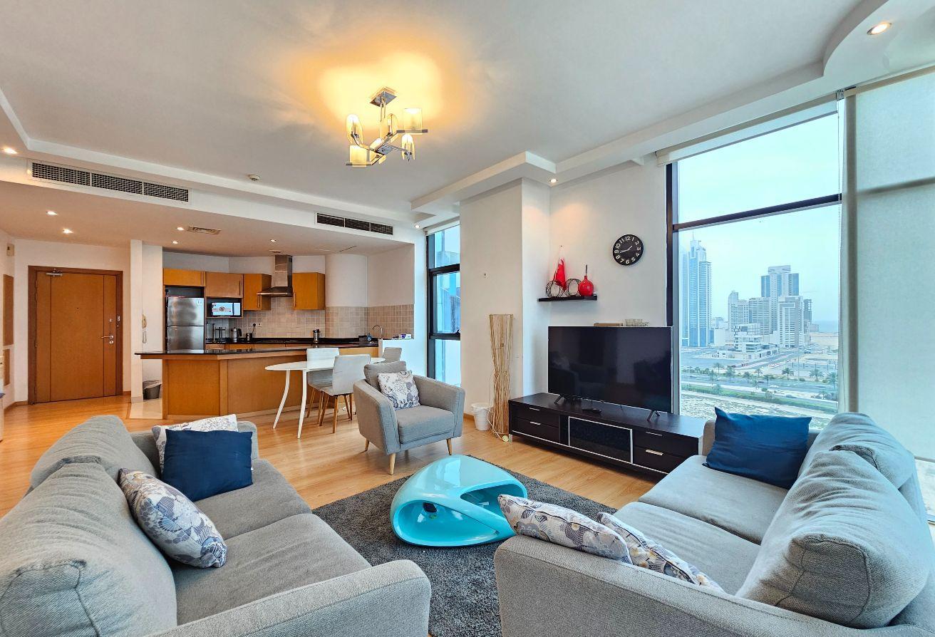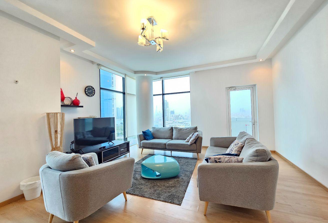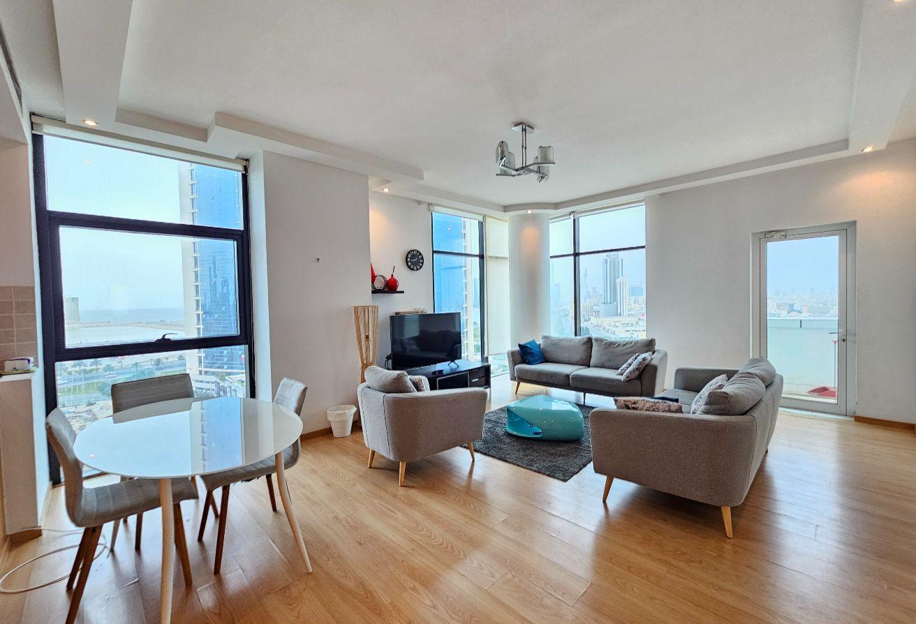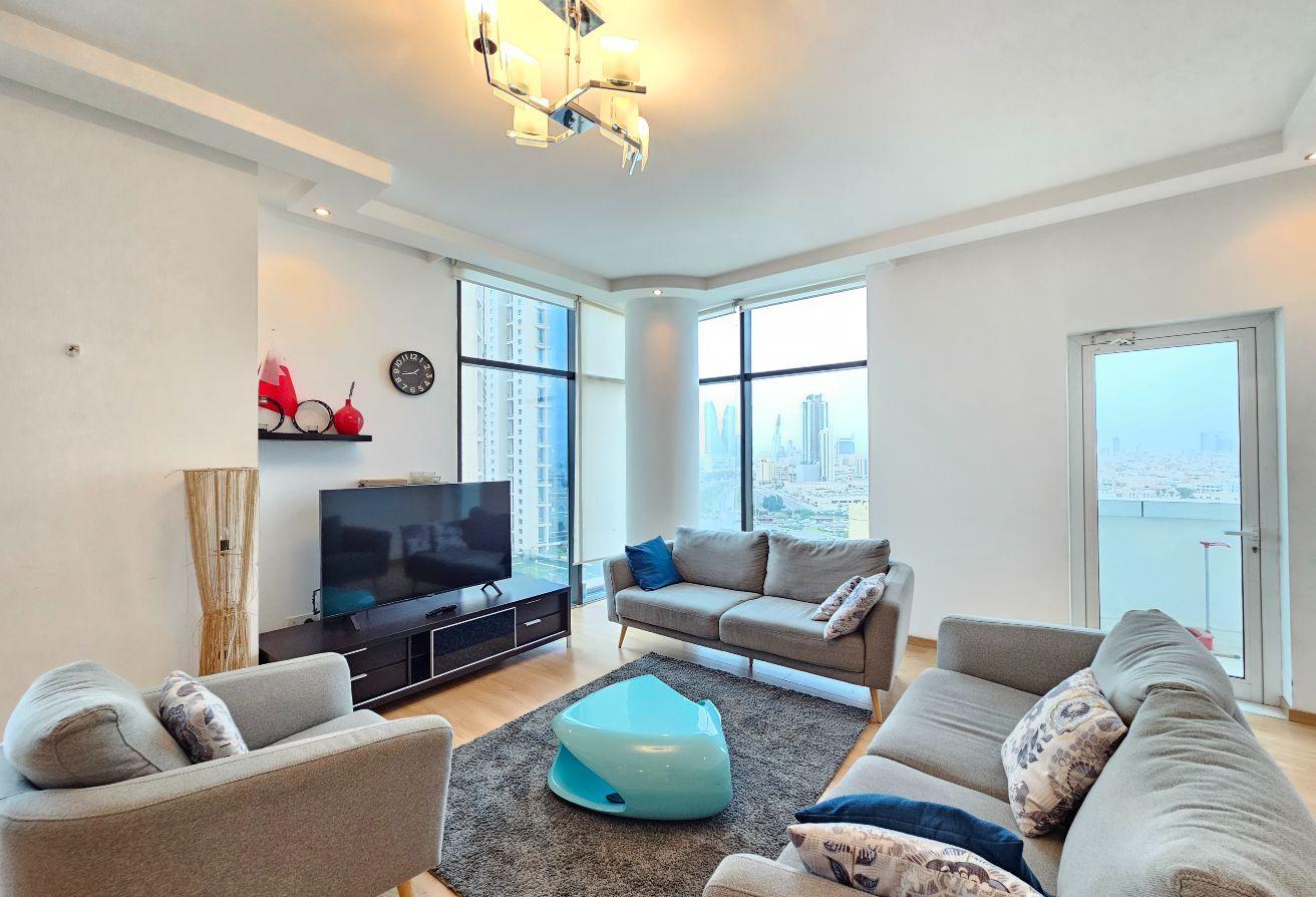 The apartment features a spacious layout with an expansive balcony offering stunning city views, creating the perfect space to relax or entertain.