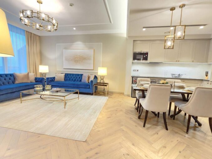 Discover sophisticated waterfront living in this luxurious two-bedroom apartment located in Bahrain Bay, which features a private balcony offering direct views of the Four Seasons Hotel and the sea. The residence provides a spacious open-plan living area, floor-to-ceiling windows, a modern kitchen, and generously proportioned bedrooms with stylish bathrooms, fostering a tranquil and exclusive environment.