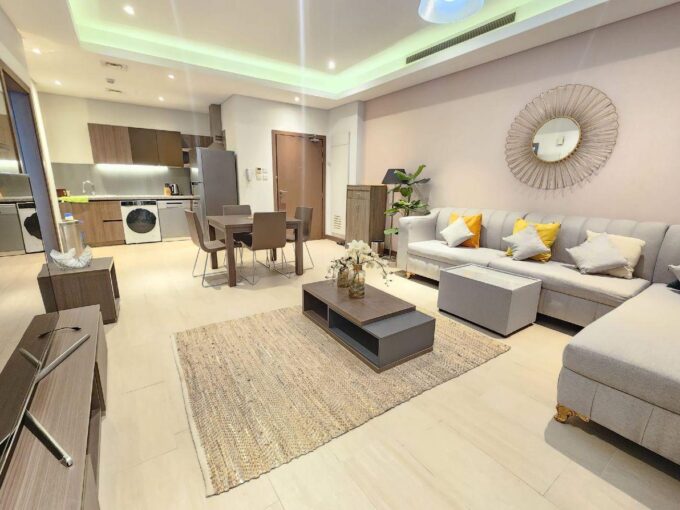Located in Juffair, the apartment is close to restaurants, cafés, shopping malls, supermarkets, and main highways, ensuring easy access to all parts of Bahrain.