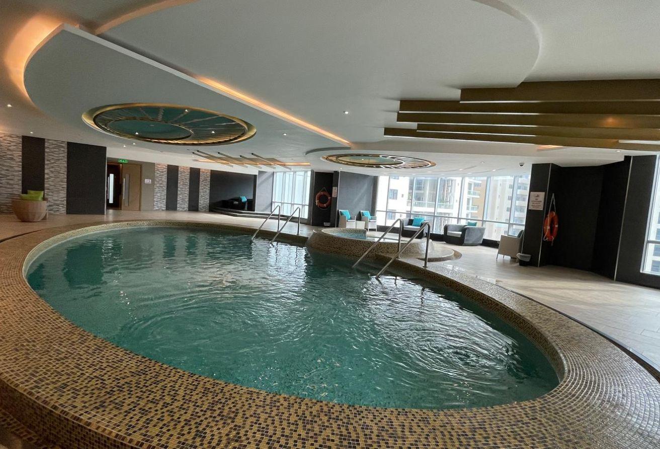 Jacuzzi, squash court, and a banquet hall ideal for gatherings and events. The building also offers everyday convenience with an on-site mini market, coffee shop, and beauty salon.