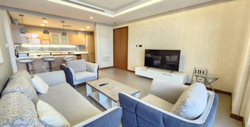 Discover the epitome of elegant luxury living in this fully furnished one-bedroom apartment with a balcony, offering panoramic high-floor sea views in close proximity to the city centre. This exceptional residence is ready for immediate occupancy, featuring excellent facilities.