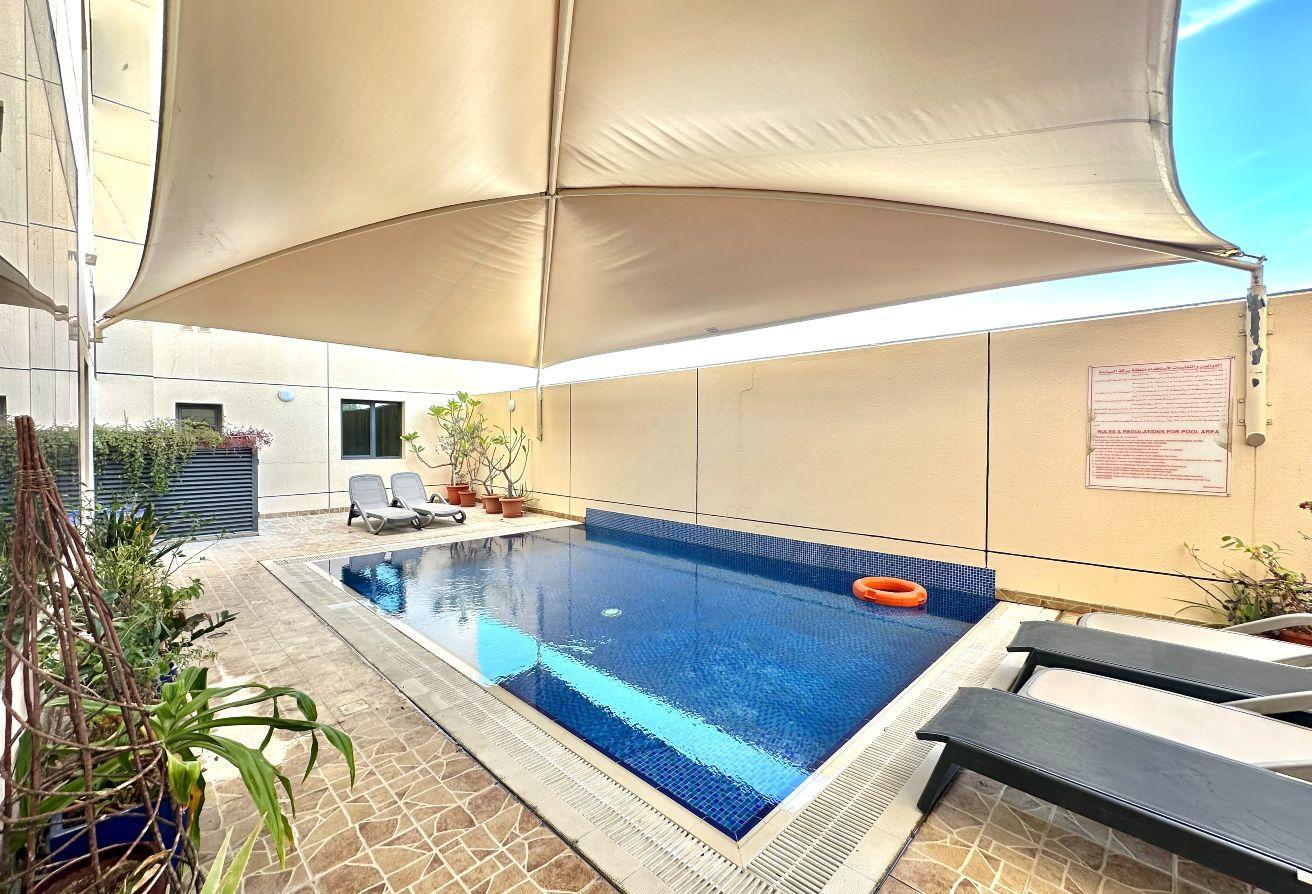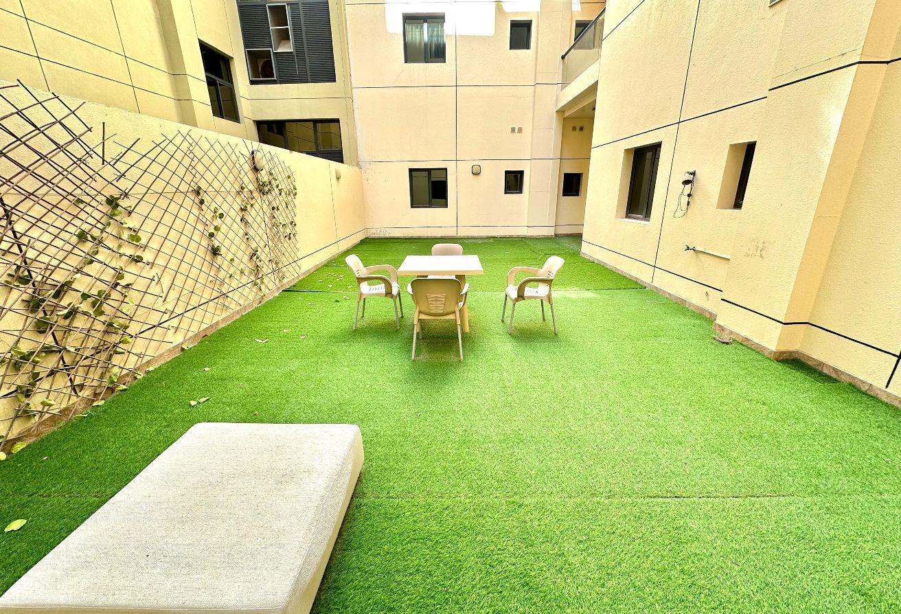 A spacious two-bedroom apartment is available for rent, located in one of the most sought-after areas for expatriates and families. The property features a generous layout and access to a large garden, offering a comfortable and family-friendly living environment.