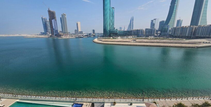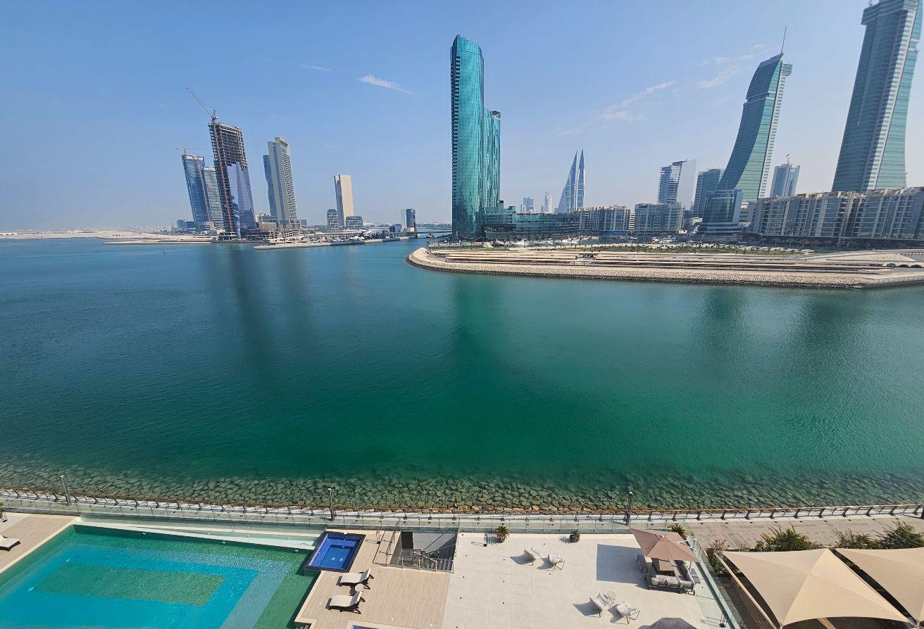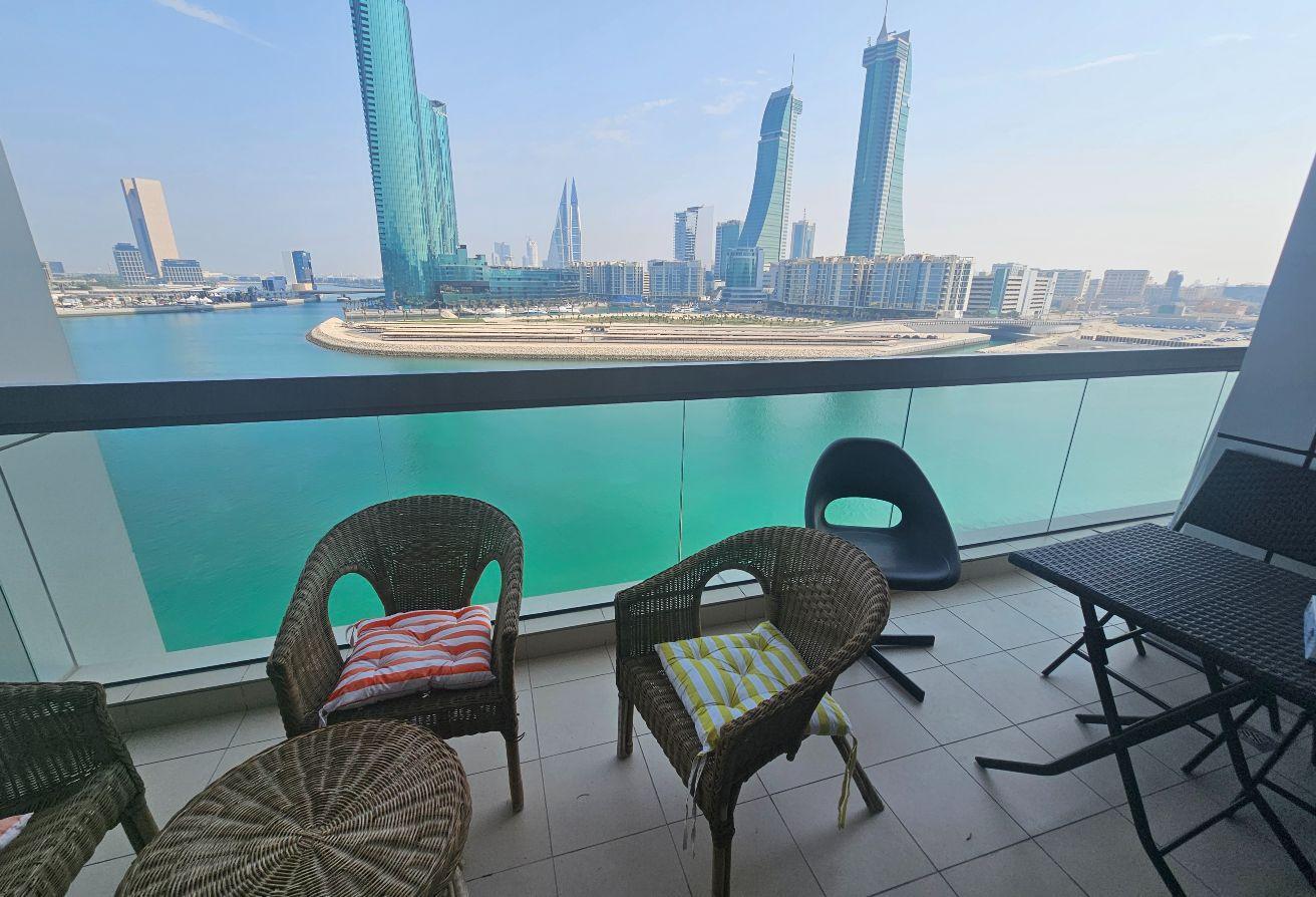 balcony with amazing sea view and all landmarks of Bahrain Bay and Manama: Four Seasons Hotel, Bahrain Financial Harbour and World Trade Center
