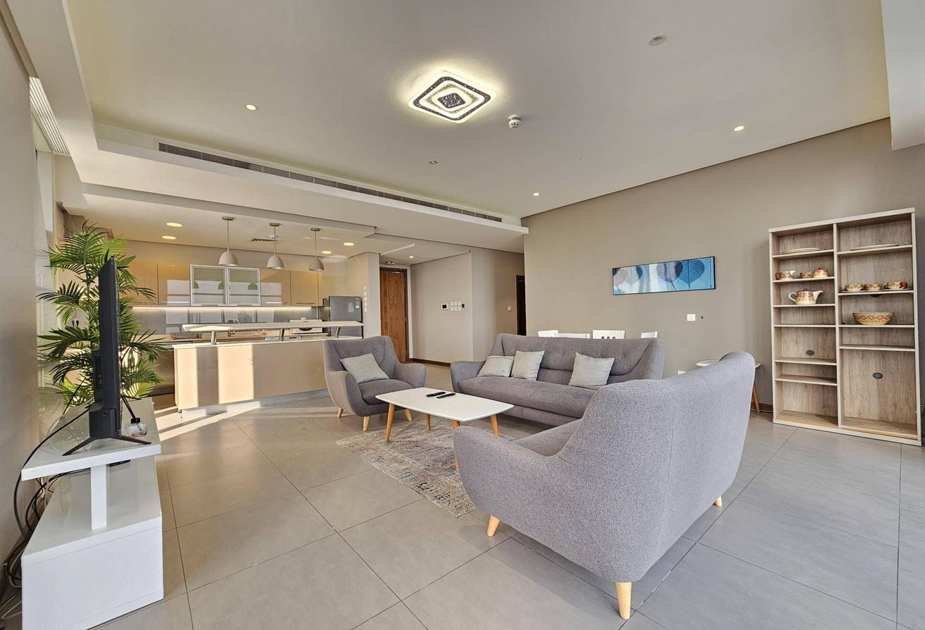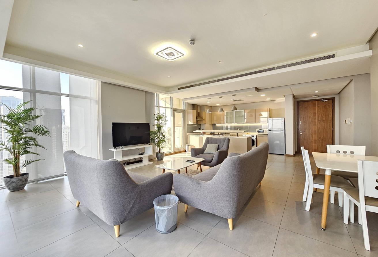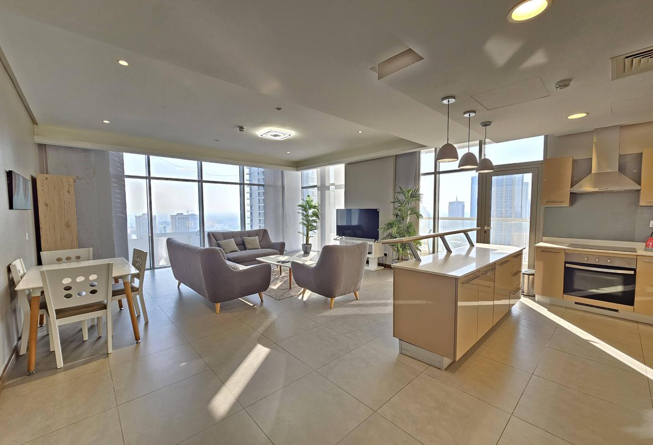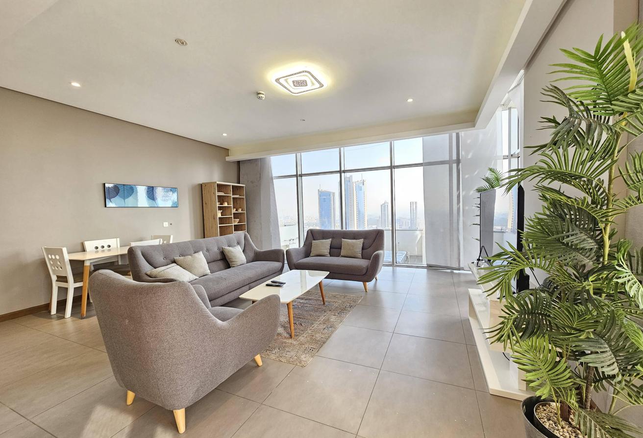 Experience luxury in this beautiful 2-bedroom modern apartment, featuring all amenities, stunning city views, and located in Seef near City Centre. This special hot deal offers convenience and elegance, just steps from City Centre Mall, with all facilities and Wi-Fi included.