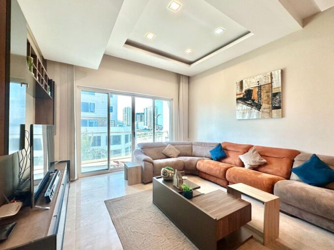 Elevate your lifestyle in this spacious, fully furnished 2-bedroom, 2-bathroom apartment in Mahooz. Located in a family-friendly building, it is perfectly situated close to the highway and just minutes from Galleria Mall. This apartment combines luxury with convenience and features exceptional amenities, including a closed kitchen and breathtaking sea views.