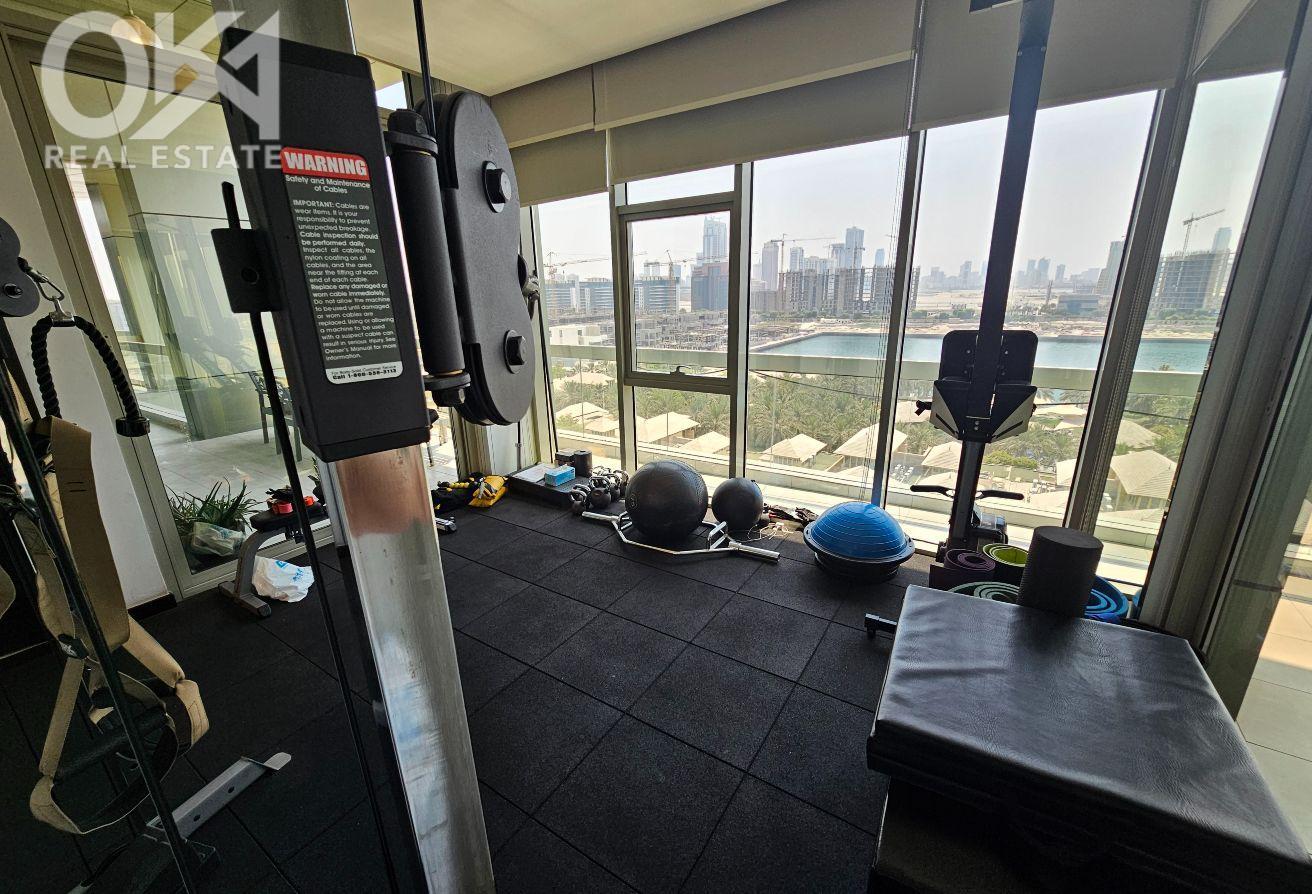 private gym with gym equipment and attached bathroom