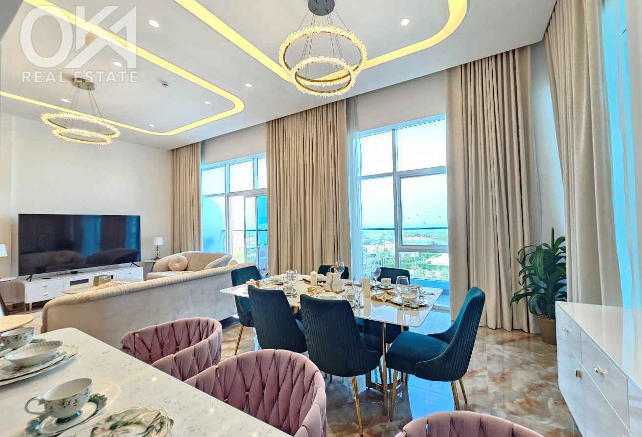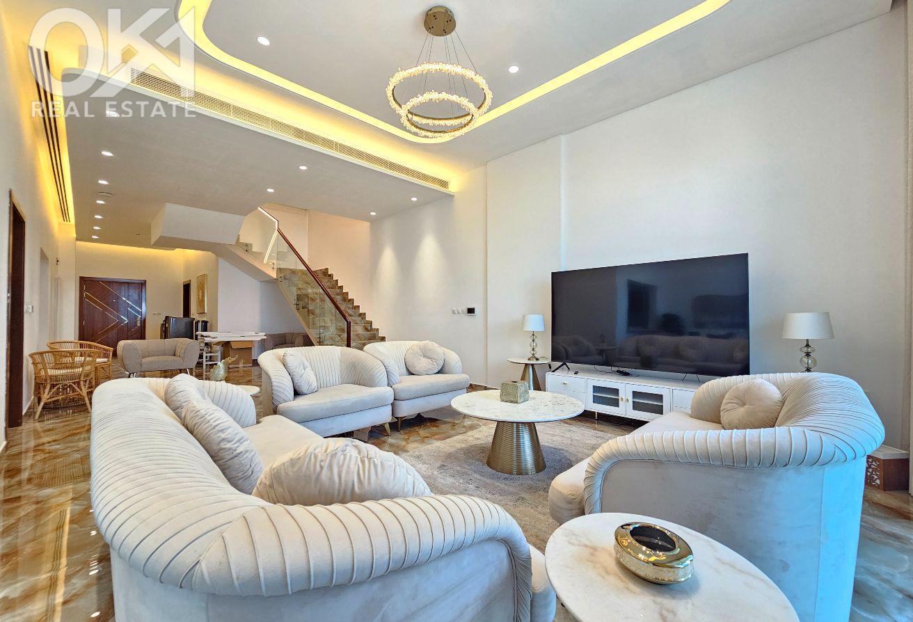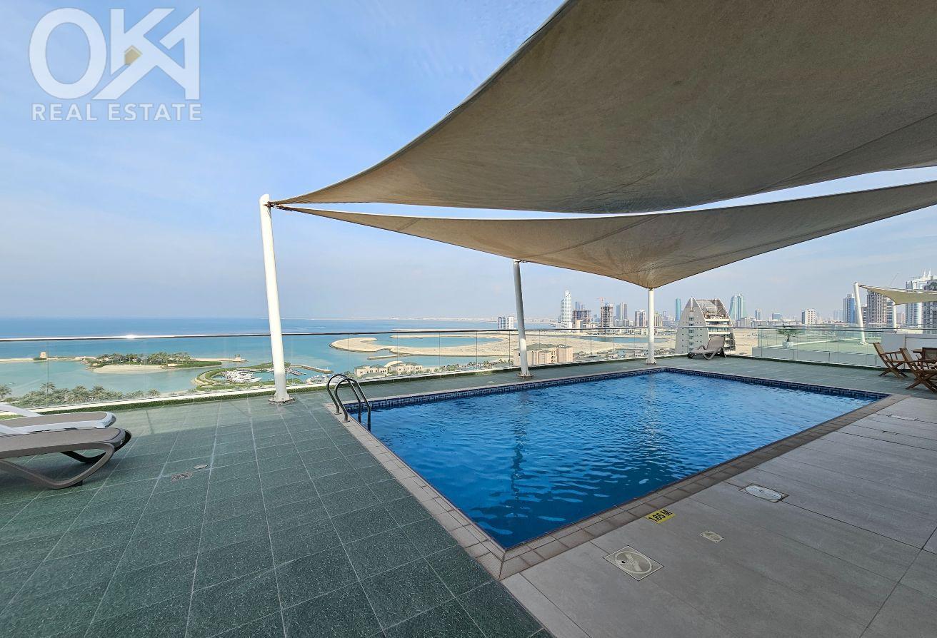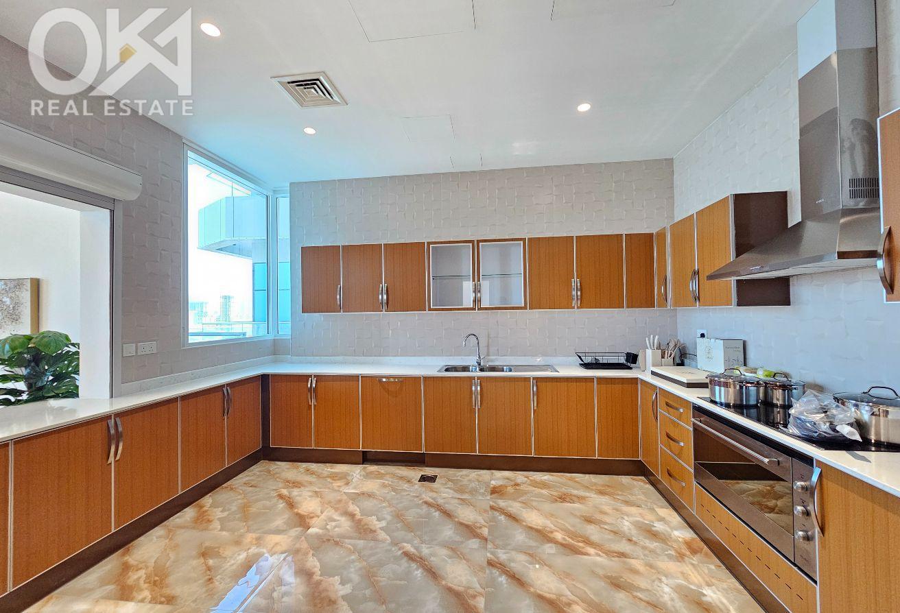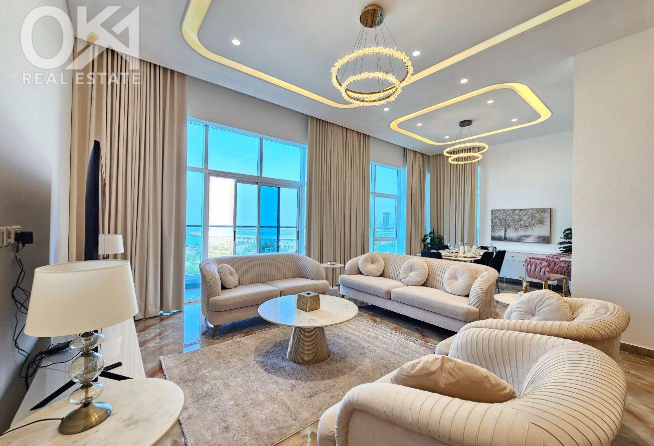 This luxurious duplex apartment for rent is in the peaceful, prestigious Seef area, close to the iconic Ritz-Carlton Resort. Fully furnished and thoughtfully designed for comfort and upscale living, it offers four spacious bedrooms, five modern bathrooms, a maid’s room, and two large living halls ideal for family living and entertaining. The closed kitchen is fully equipped with premium appliances and generous storage. Two large balconies offer uninterrupted sea views, letting in abundant natural light and creating a calm, relaxing atmosphere. The apartment features top-quality furniture and an advanced air purifier system, ensuring a clean, healthy indoor environment. With its generous layout and prime location, this duplex is a rare luxury offering in Seef.