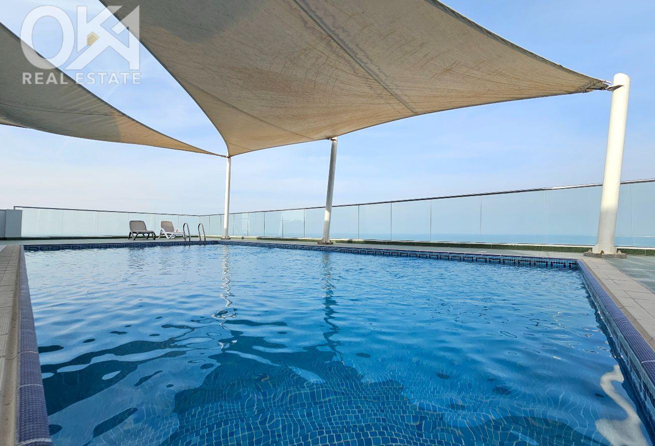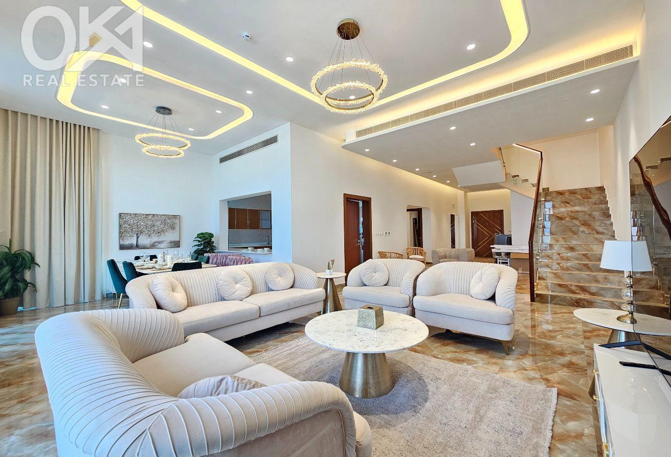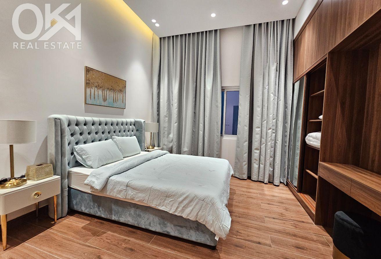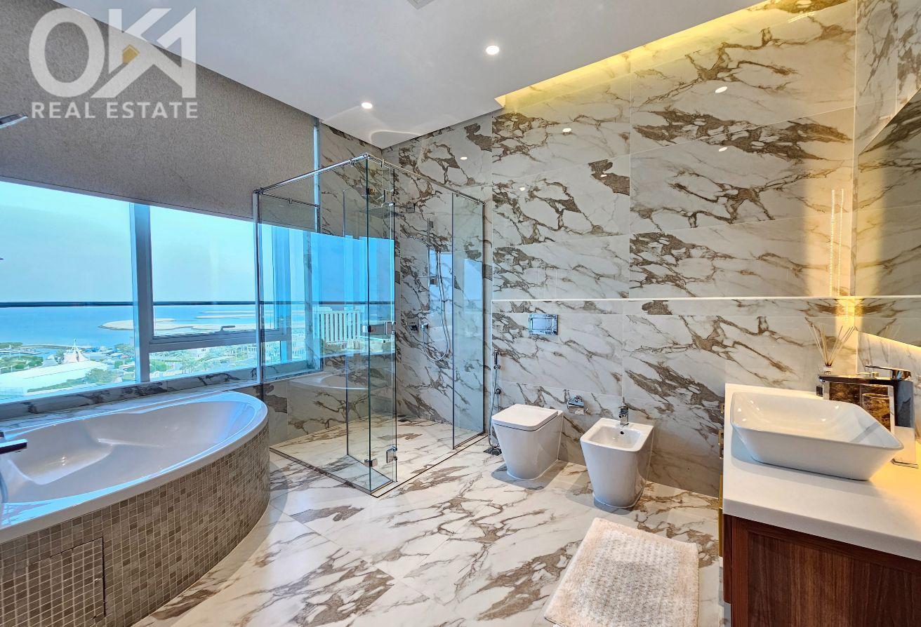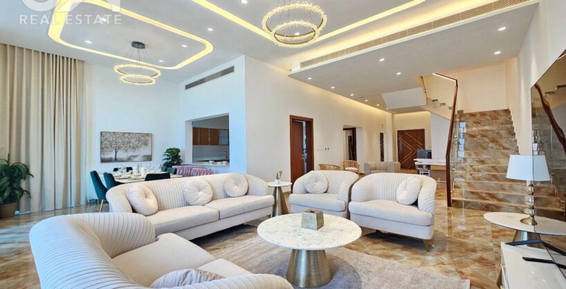 This luxurious duplex apartment for rent is in the peaceful, prestigious Seef area, close to the iconic Ritz-Carlton Resort. Fully furnished and thoughtfully designed for comfort and upscale living, it offers four spacious bedrooms, five modern bathrooms, a maid’s room, and two large living halls ideal for family living and entertaining. The closed kitchen is fully equipped with premium appliances and generous storage. Two large balconies offer uninterrupted sea views, letting in abundant natural light and creating a calm, relaxing atmosphere. The apartment features top-quality furniture and an advanced air purifier system, ensuring a clean, healthy indoor environment. With its generous layout and prime location, this duplex is a rare luxury offering in Seef.