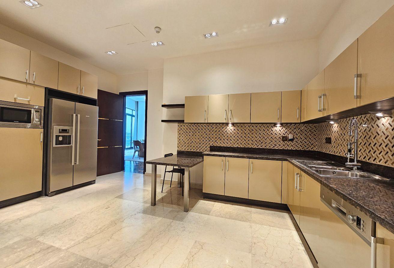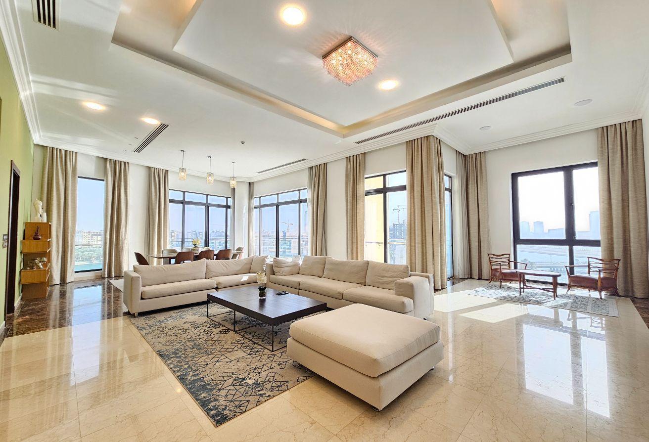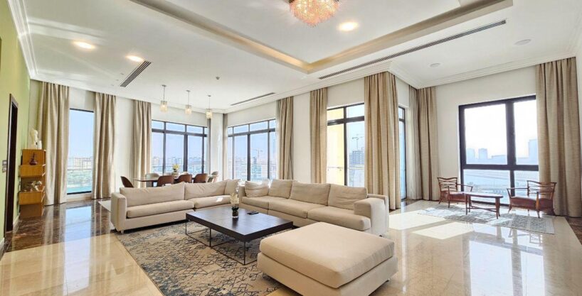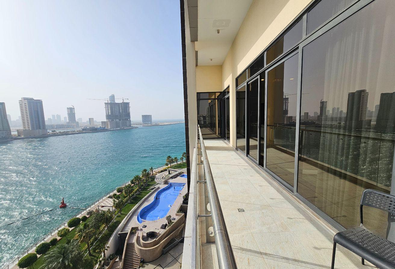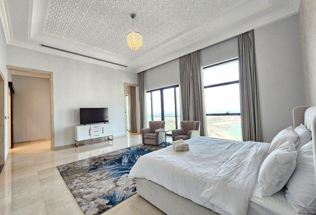 A rare opportunity to live in this 500 sqm ultra-luxury penthouse on Reef Island with stunning 360-degree sea views from every room. It features balconies, floor-to-ceiling windows, open-plan living and dining areas, a large kitchen, private study, reception, maid’s room, and high-end furnishings, all offering natural light and ocean vistas. Located near the promenade, cafes, and just minutes from City Centre Mall and the Saudi Causeway, it balances exclusivity, comfort, and convenience.