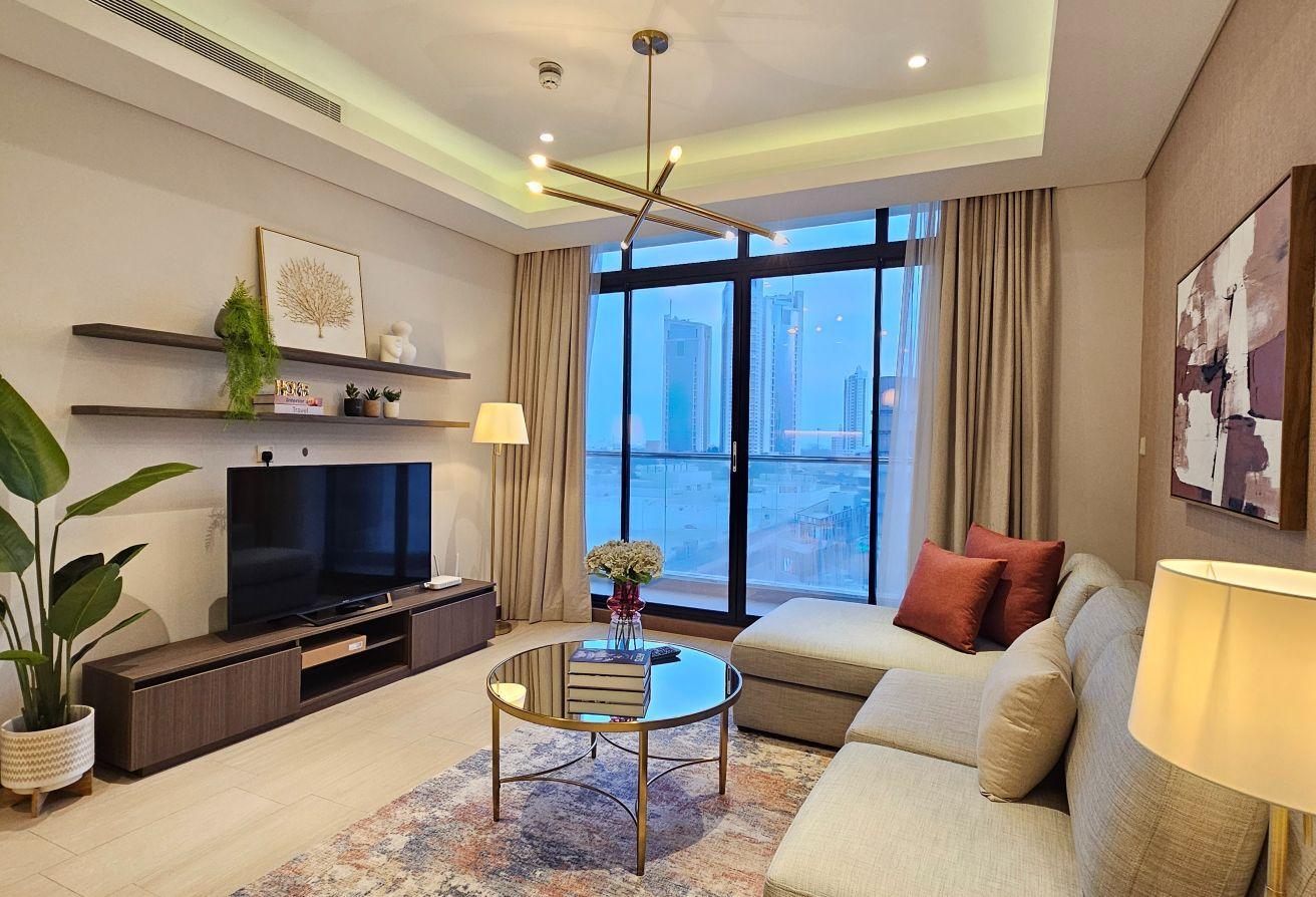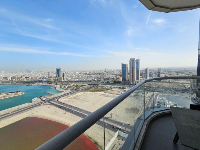 Experience luxurious, spacious living in this beautifully renovated one-bedroom, two-bath apartment with panoramic views, located in the heart of Seef directly opposite City Centre. This tastefully furnished home features a large balcony and offers move-in readiness. It boasts a spacious terrace with stunning views in a highly sought-after tower—an unbeatable deal!