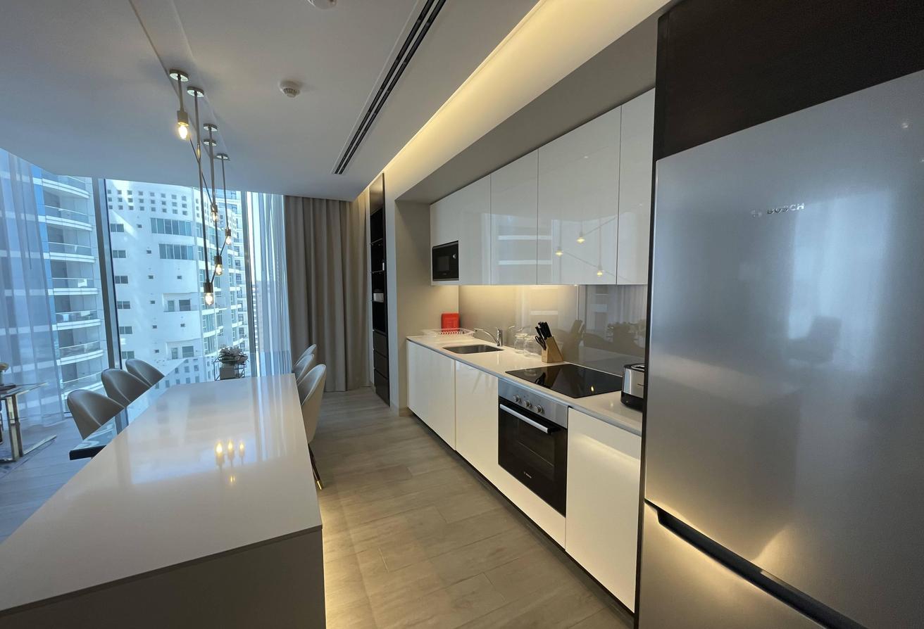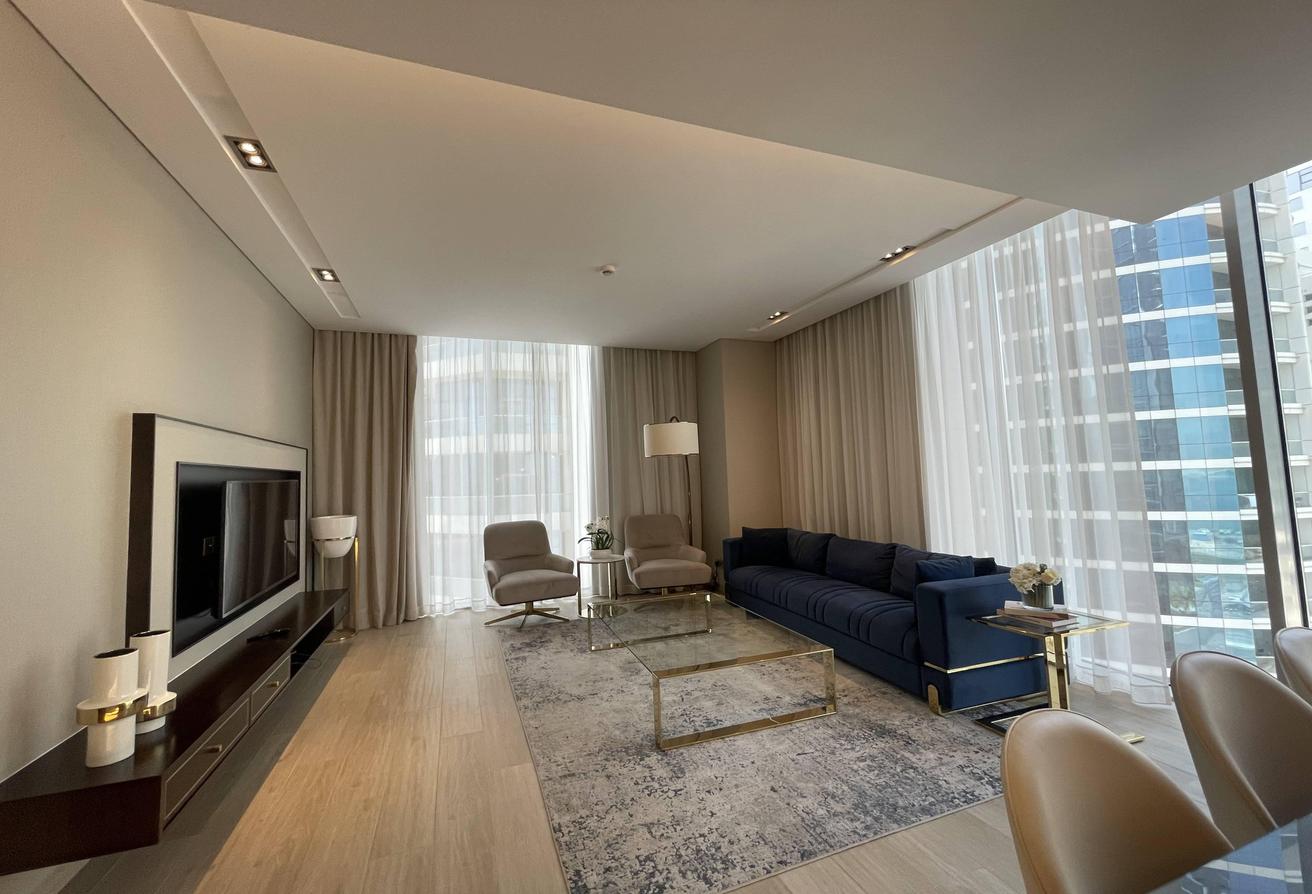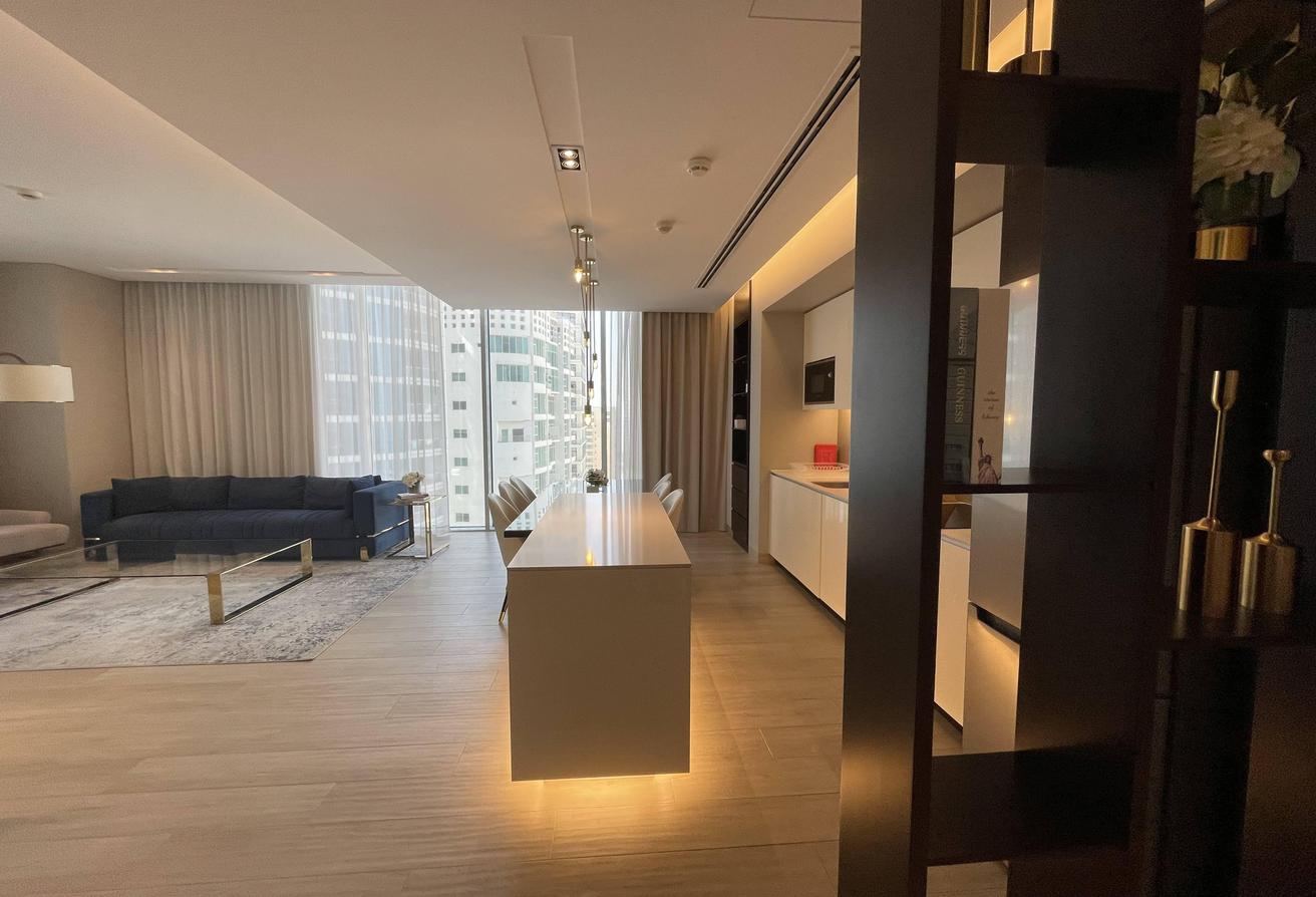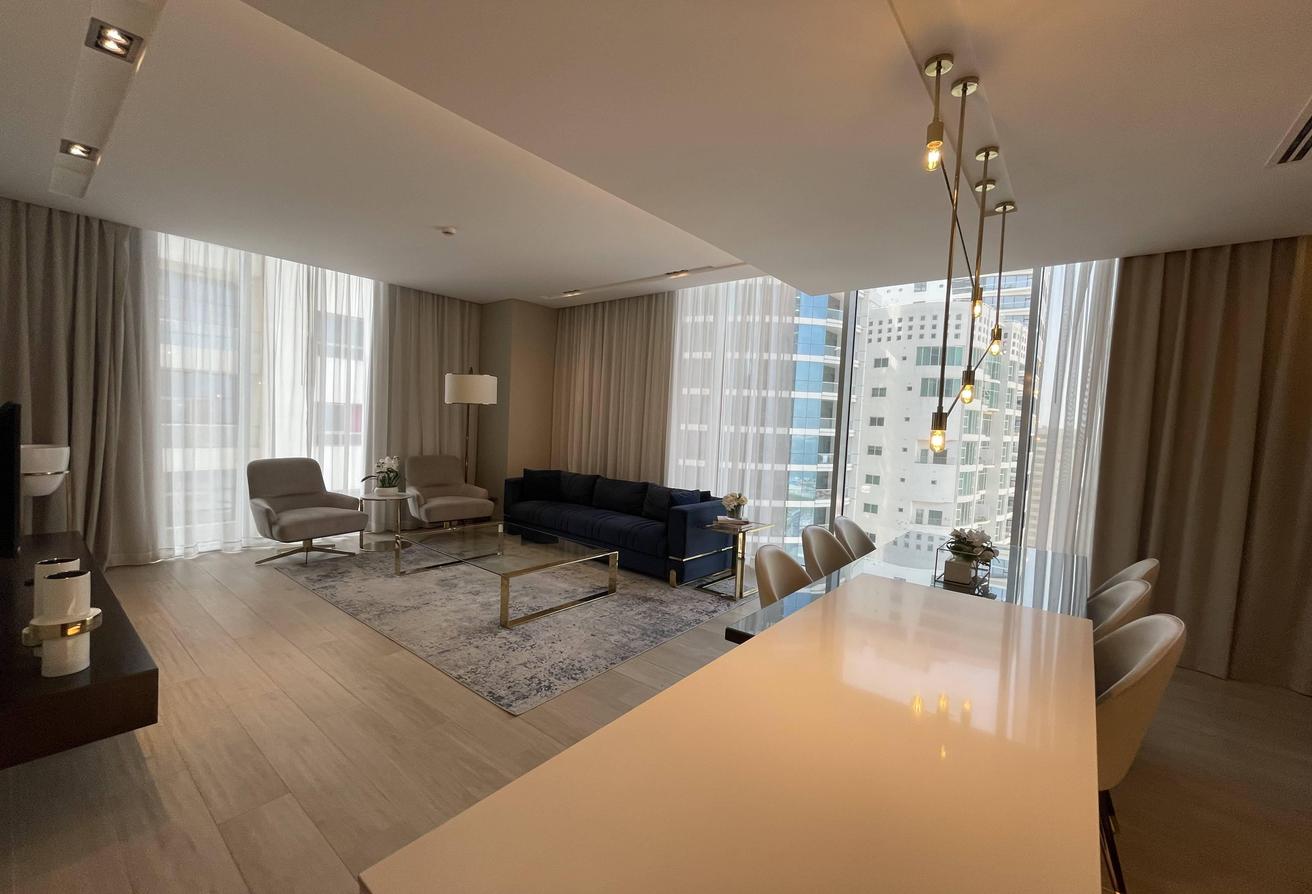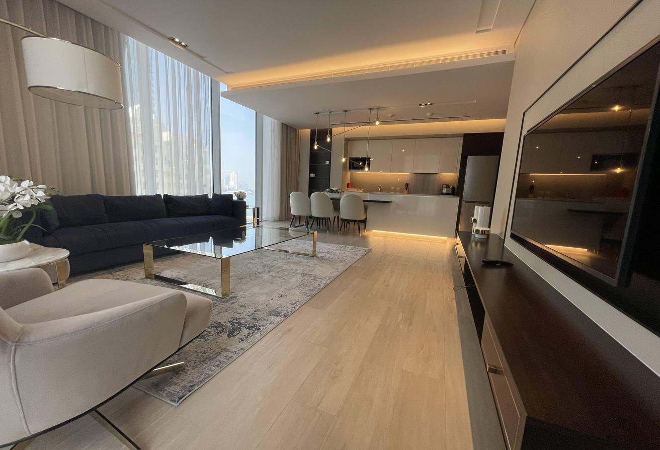 OKA Real Estate presents a stunning 2-bedroom apartment in an ultra-modern high-rise tower, perfectly located in the heart of Juffair. This luxury residential development offers a true resort-style lifestyle, combining elegance, comfort, and breathtaking sea views.