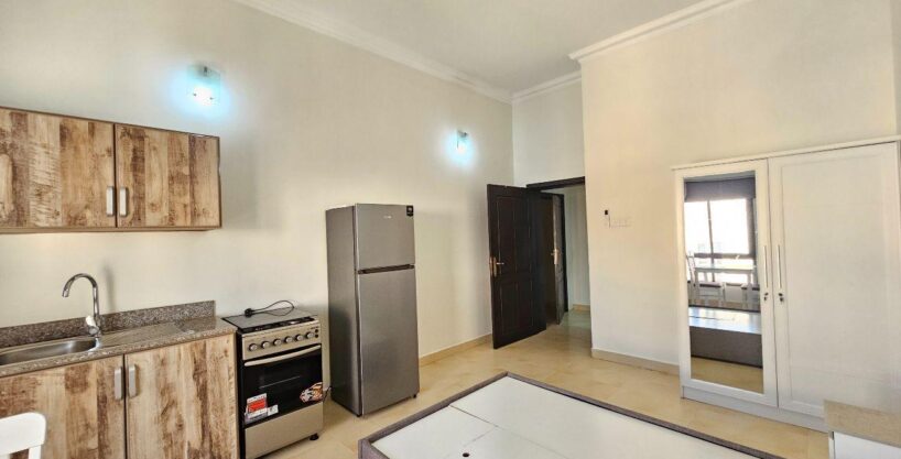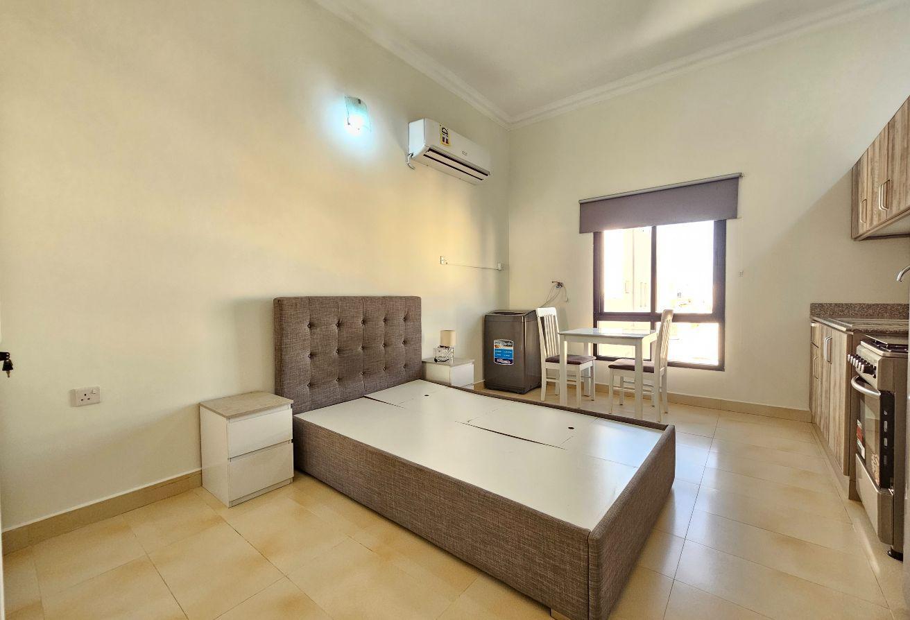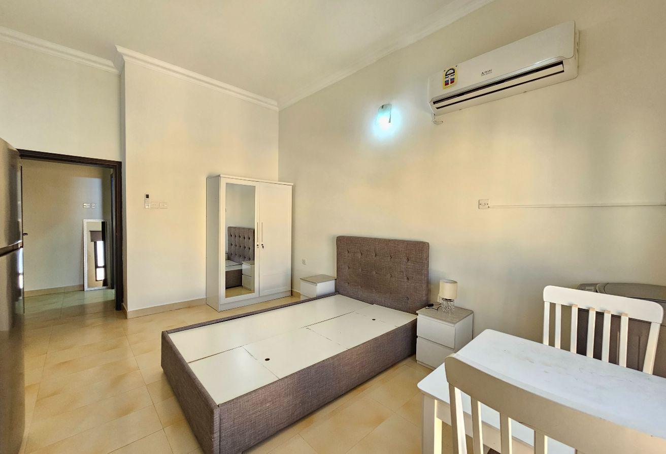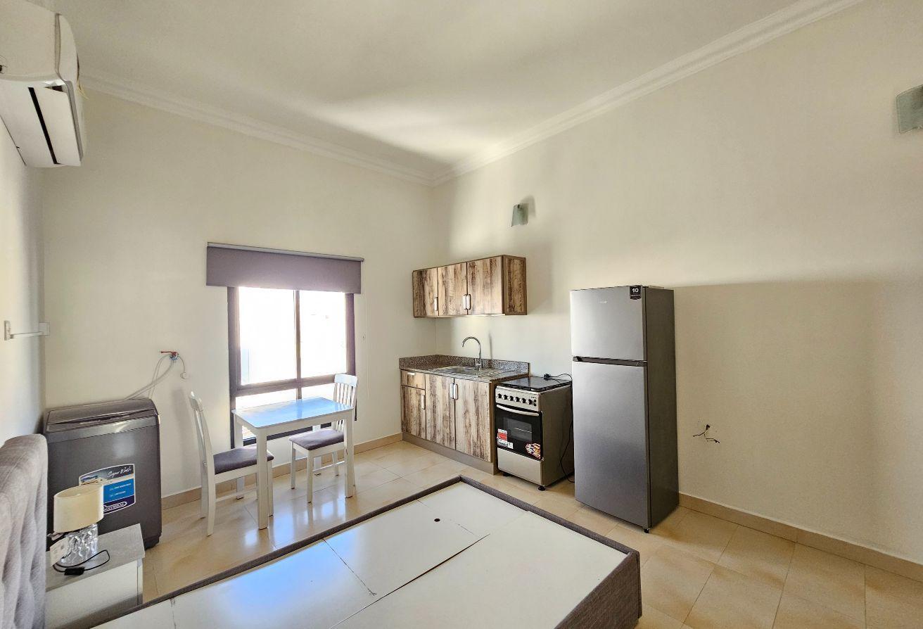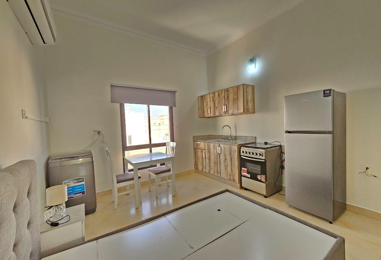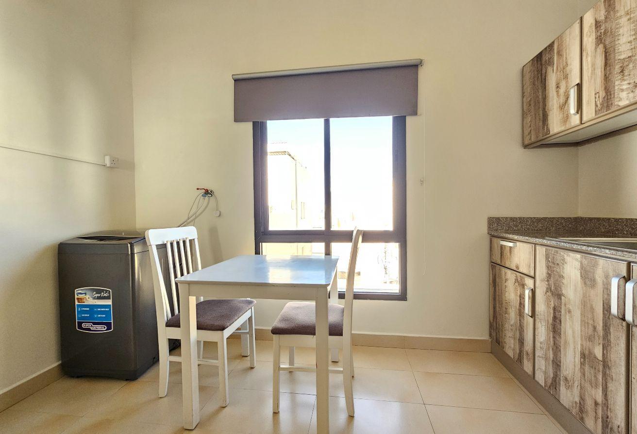 This apartment features a fully furnished studio with unlimited electricity and water allowance (EWA), as well as an open-plan kitchen and toilet. It is situated in a peaceful residential area of Janabiya, within a family-oriented building near Al Mercado Mall. The apartment is suitable for a couple or a family.