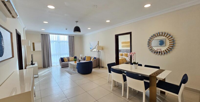 A modern, newly renovated apartment is now available for rent in the vibrant centre of Adliya, perfect for families seeking comfort and convenience. This apartment boasts spacious living and dining areas, two generously sized bedrooms, three bathrooms, a fully equipped kitchen, and built-in wardrobes, along with dedicated car parking.